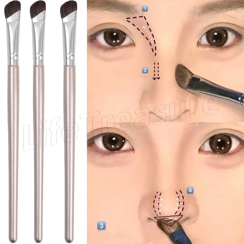 แปรงแต่งหน้า แฟนซิน แปรงเงาจมูกหัวแบนมุมเครื่องมือเครื่องสําอางไฮไลท์บลัชออนคอนทัวร์รอยเปื้อนนุ่มครึ่งรูปพัดลมสําหรับเงาจมูก