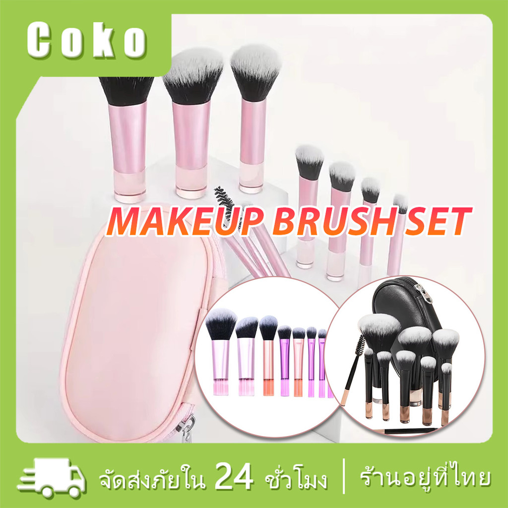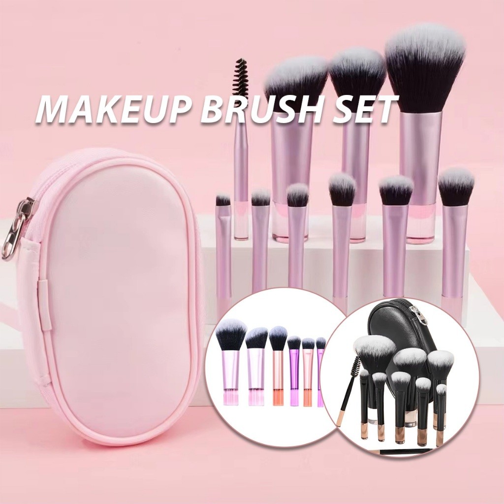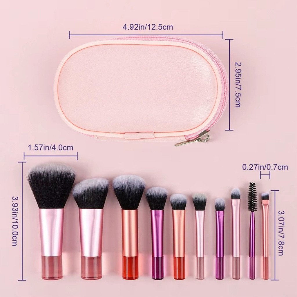 แปรงแต่งหน้า/ชุด10ชิ้น แปรงปัดแก้มรองพื้น พร้อมกระเป๋า เครื่องสำอาง แปรงอายแชโดว์ ขนาดพกพา