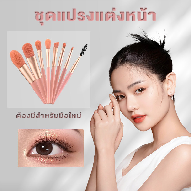 แปรงแต่งหน้า ชุดแปรงแต่งหน้า แปรงอายแชโดว์ 8pcs ต้องมีสำหรับมือใหม่ ขนนุ่ม คุณภาพสูง