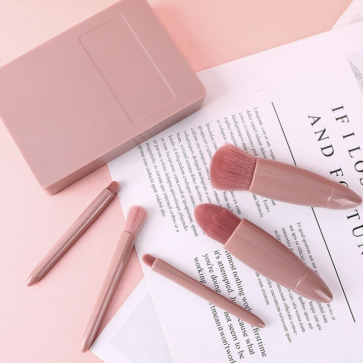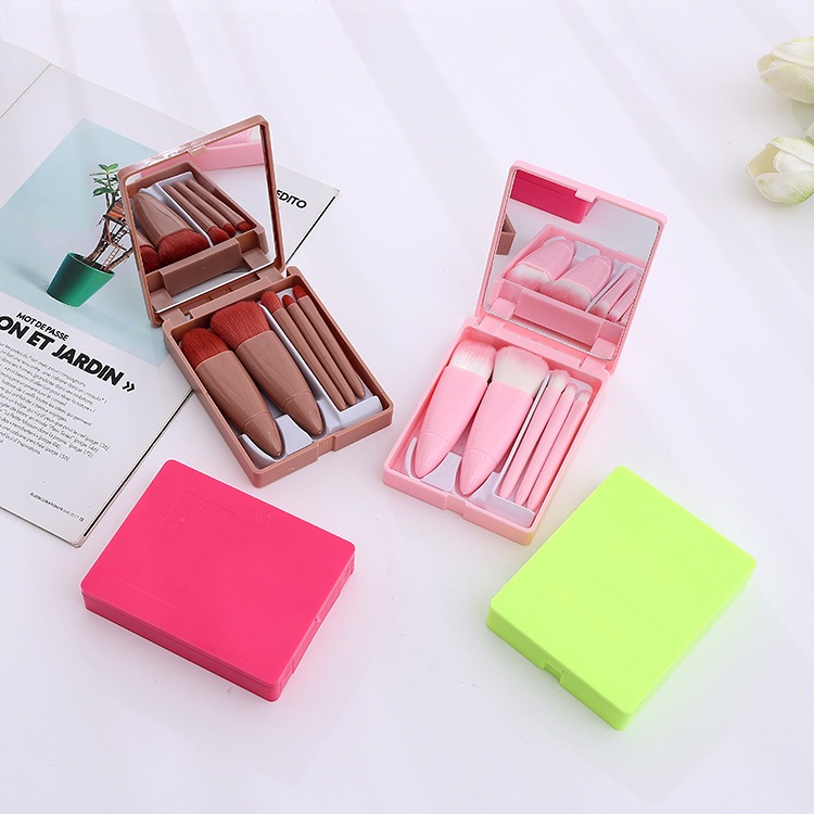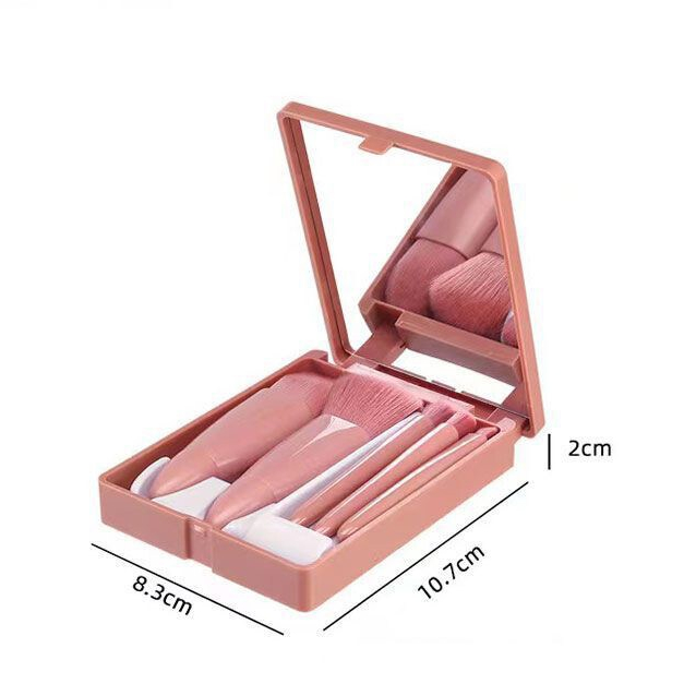 แปรงแต่งหน้า ชุดแปรงแต่งหน้า พร้อมกระจกเงา Makeup Brush ชุด 5 ชิ้น เซ็ทแปรงแต่งหน้า ขนนิ่ม ไม่บาดหน้