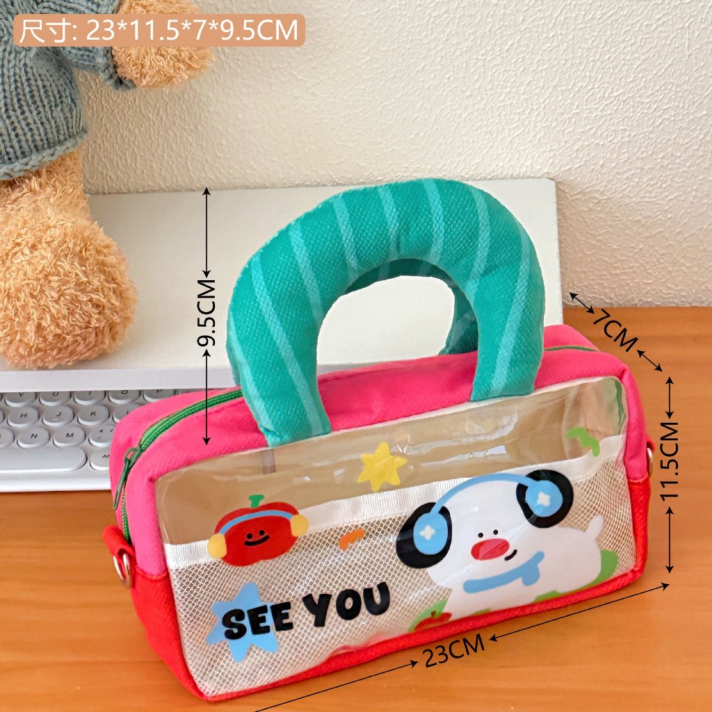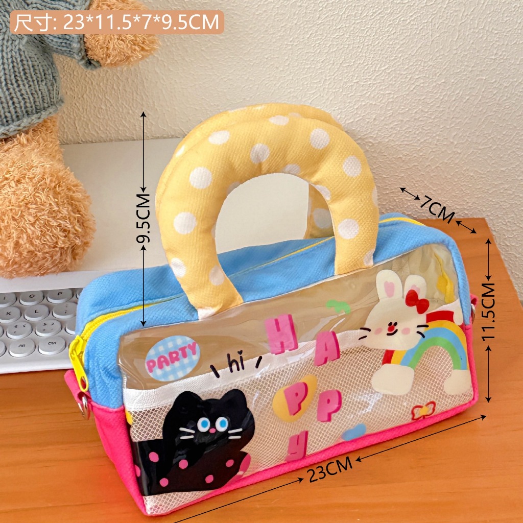 โปร่งใสกันน้ําการ์ตูนสิริกระเป๋ามัลติฟังก์ชั่แต่งหน้ากระเป๋าดินสอถุงเก็บเดินทาง