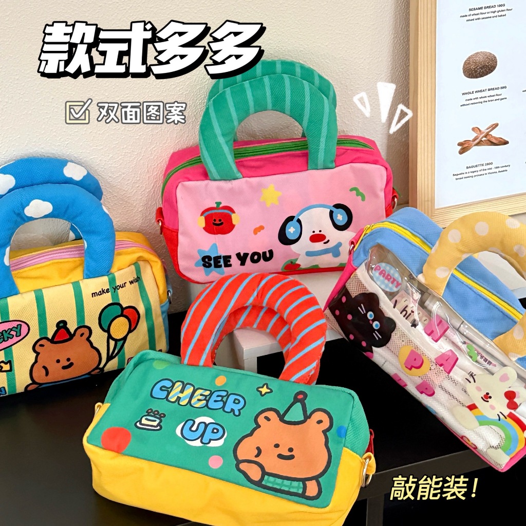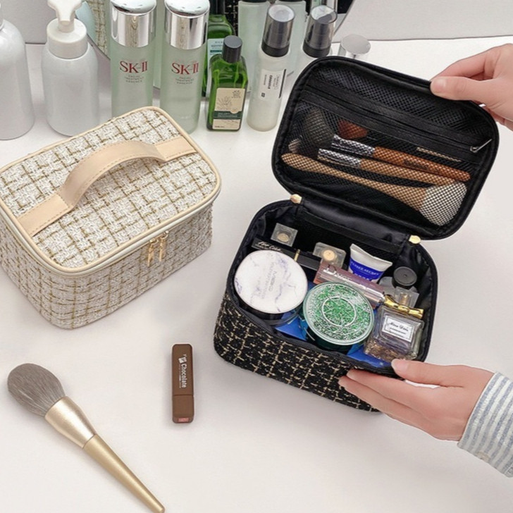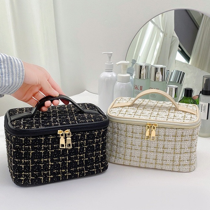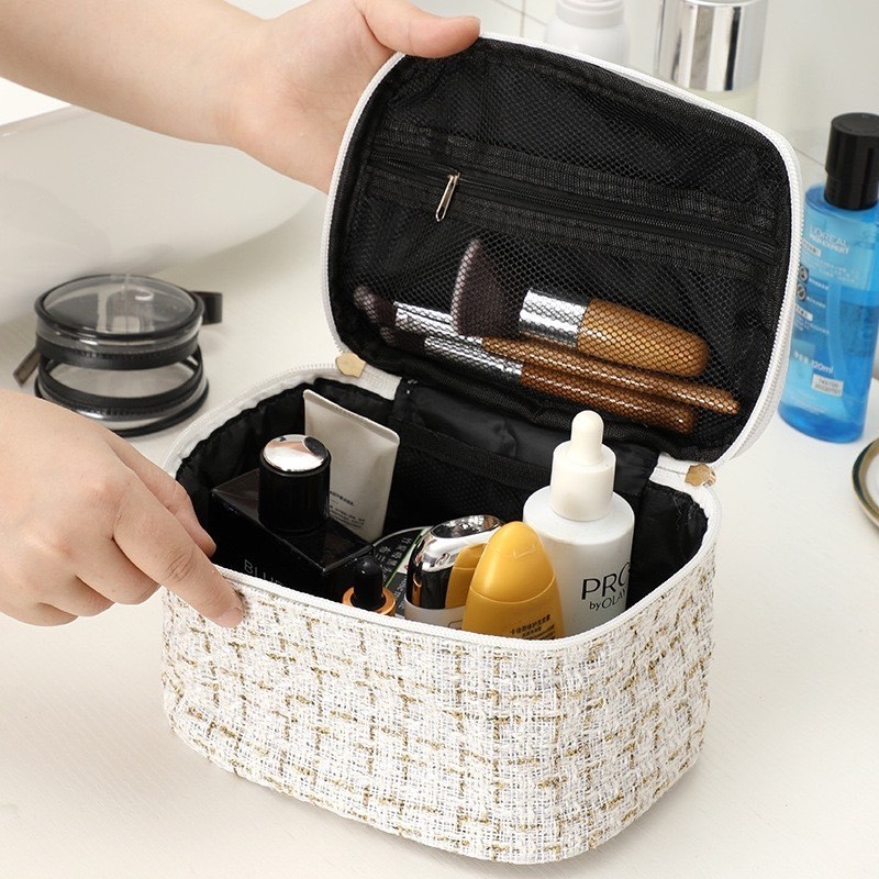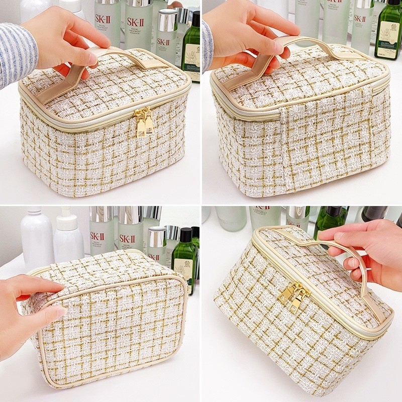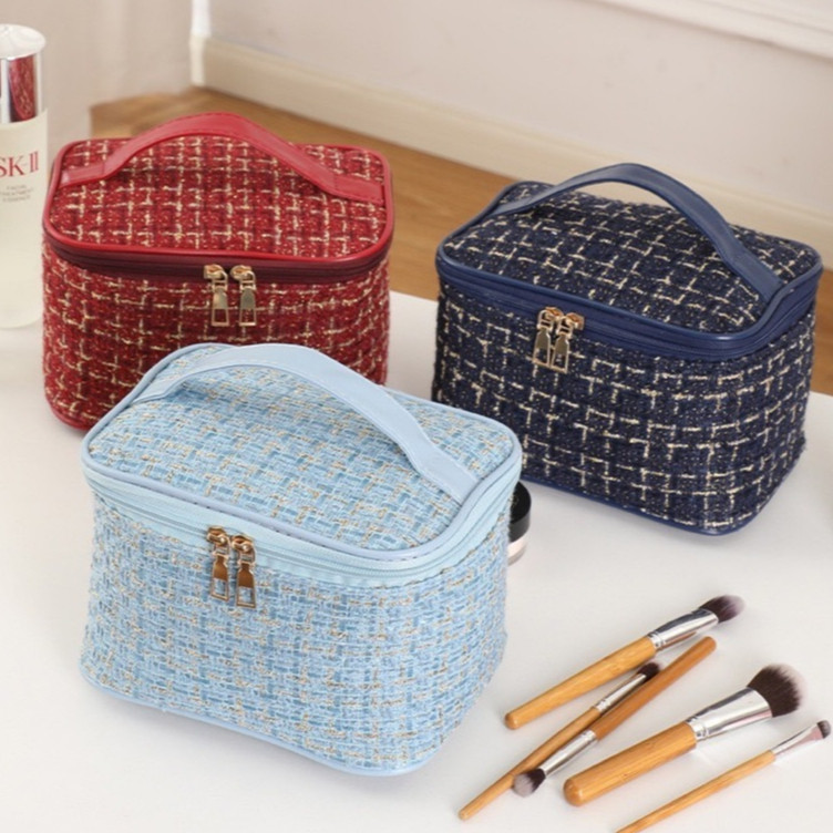 ใหม่ กระเป๋าเครื่องสำอาง ผ้าทวิต ใส่ของได้เยอะ สไตล์เกาหลี พร้อมส่งจากไทย