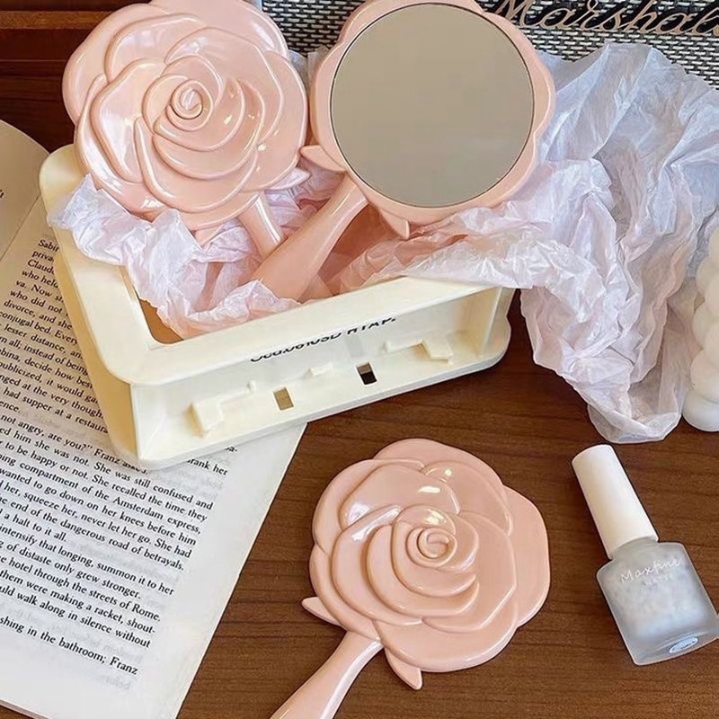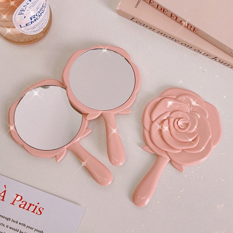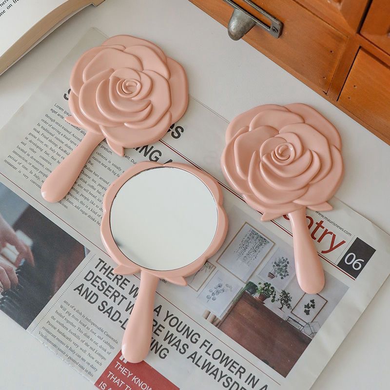 โรแมนติก Rose Shape Mirror Mini แบบพกพา Handle Mirror สาวอุปกรณ ์ แฟชั ่ น