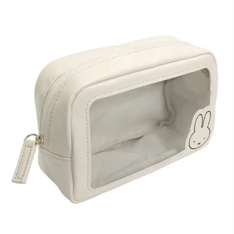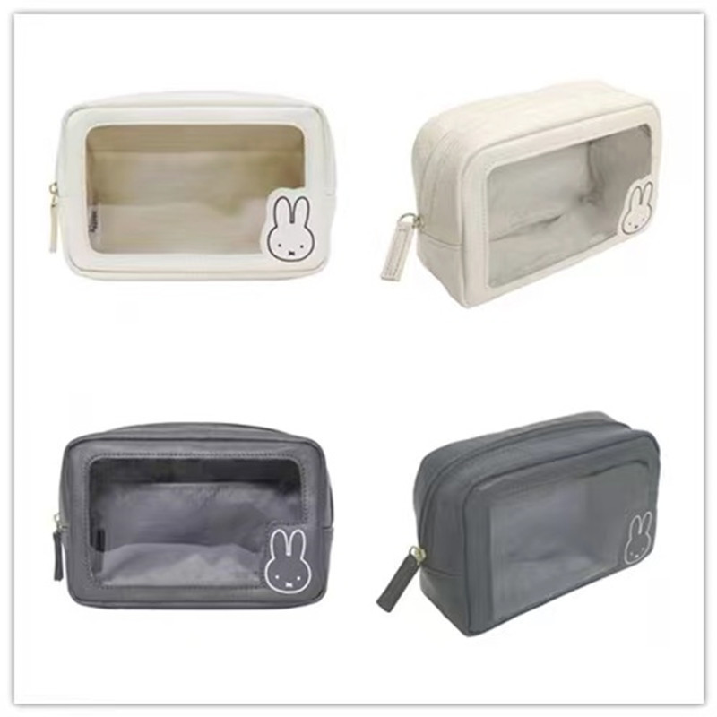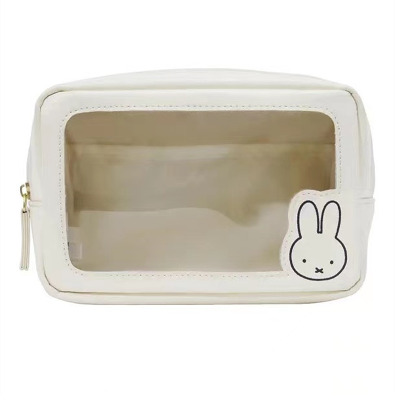 โปร่งใสใส มิฟฟี่ กระเป๋าเครื่องสําอางสีขาวกระเป๋าเครื่องสําอางการ์ตูนความจุขนาดใหญ่กันน้ําแบบพกพาถุงเก็บเดินทาง