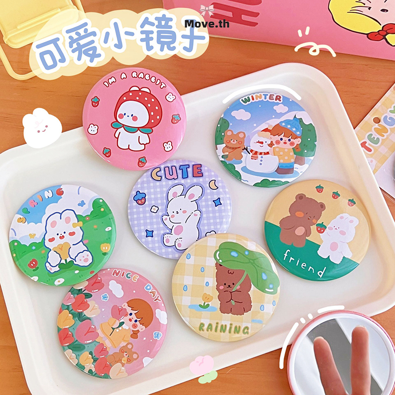 ในไทย-พร้อมส่ง✨1บาท กระจกพกพาน่ารักลายการ์ตูนสีแคนดี้เบาพิเศษพกพาง่ายสไตล์เกาหลีได้ทุกเพศ-Move