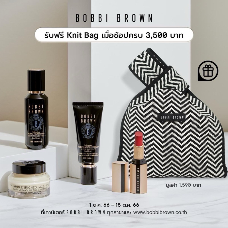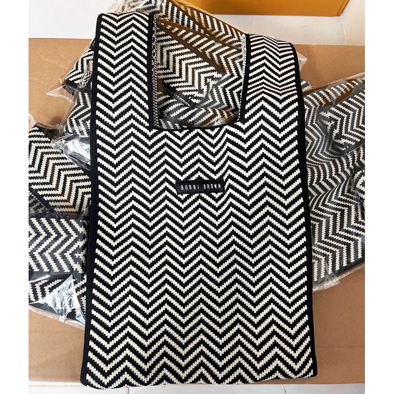 ใหม่✨แท้💯 กระเป๋าถัก Bobbi Brown Knit Bag (No Box) สีขาว-ดำ น่ารักมาก