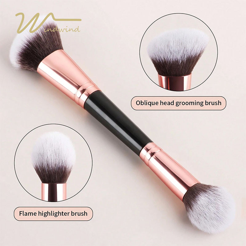🔥ร้านค้าไทย🔥แปรงไฮไลท์คอนทัวร์ปลายคู่ 1 อัน ไม่ซึมผงง่าย แปรงปัดแก้มแป้งฝุ่นแบบพกพา-ww