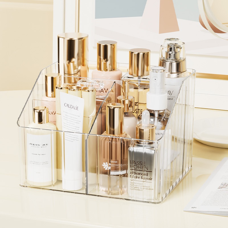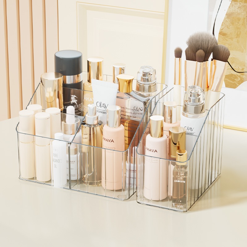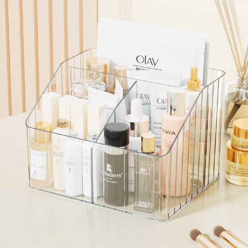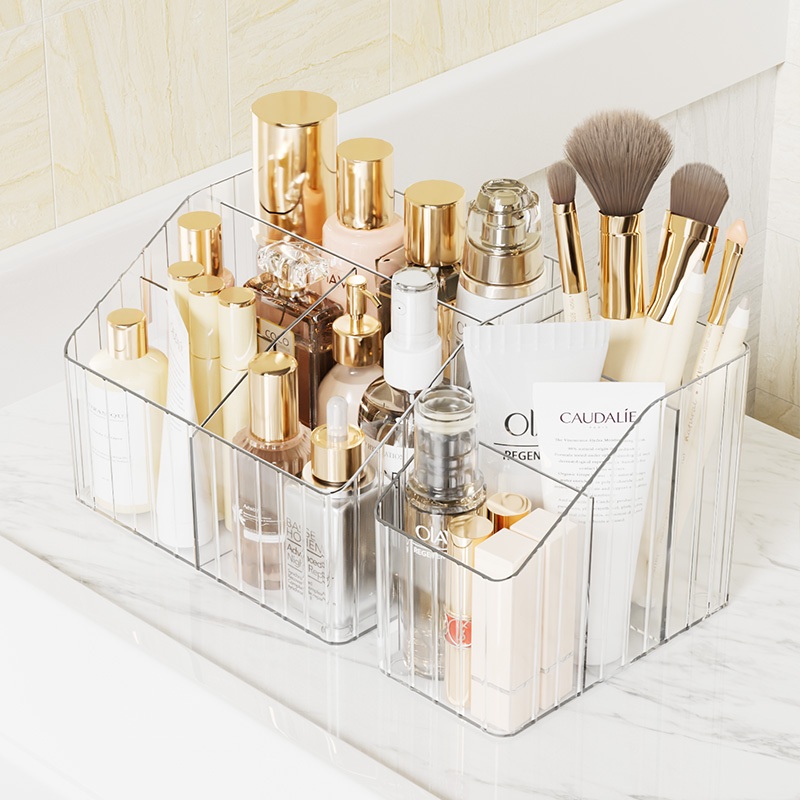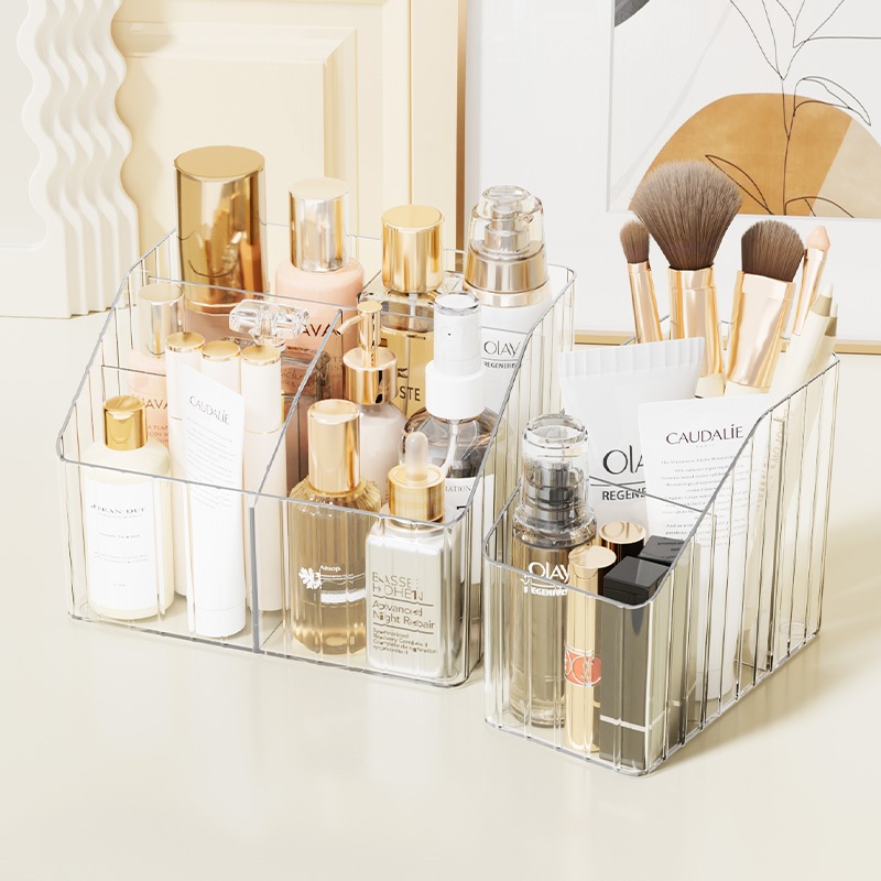🚚COD+จัดส่งฟรี🚚กล่องเก็บเครื่องสำอาง อะคริลิโปร่งใส ลายสก๊อต แปรงรองพื้น อายไลเนอร์ ลิปสติก กล่องแสดง