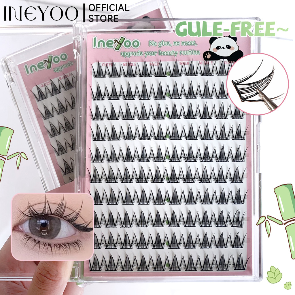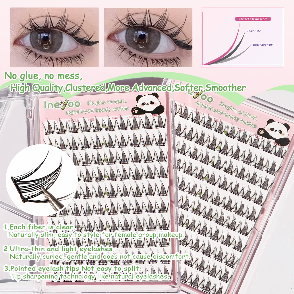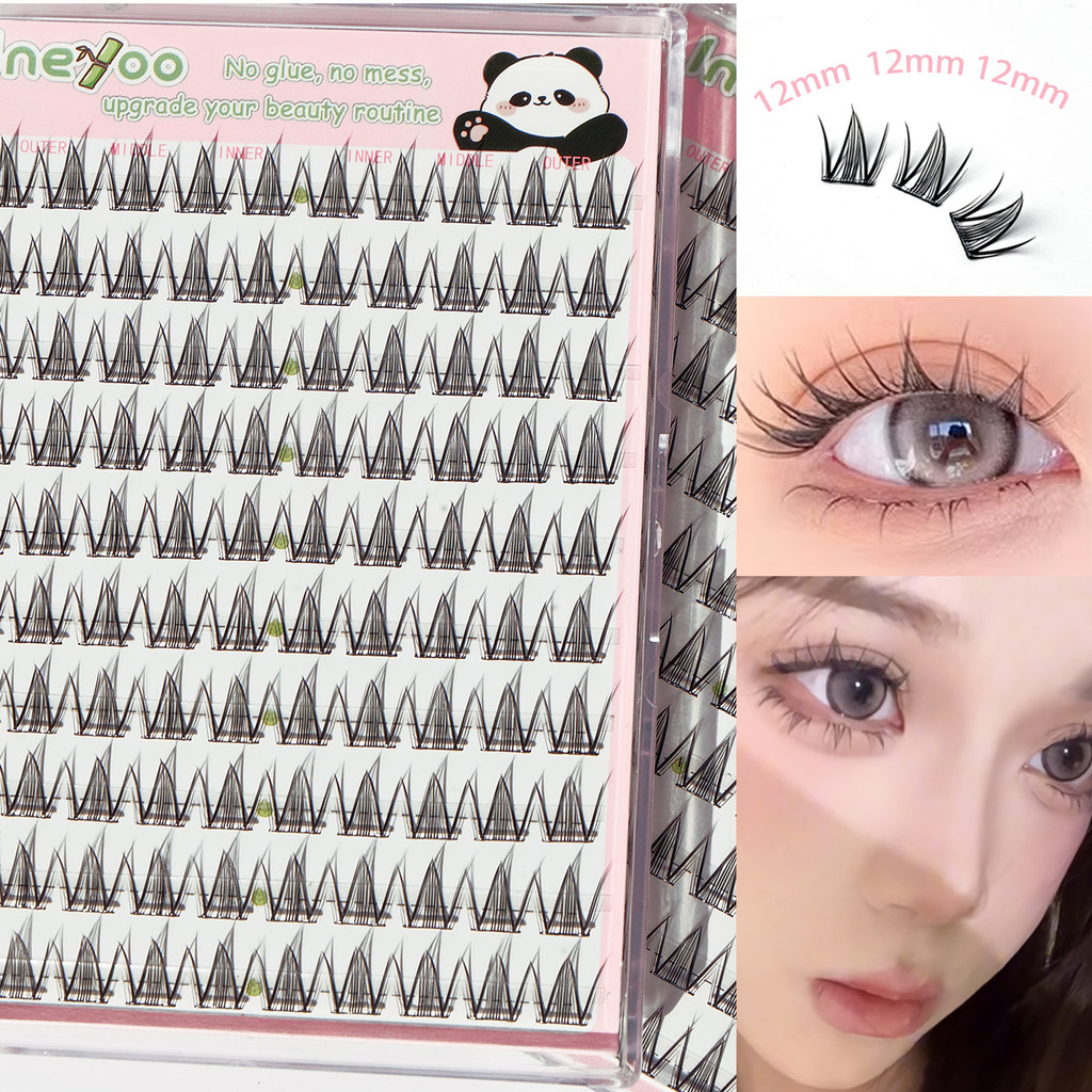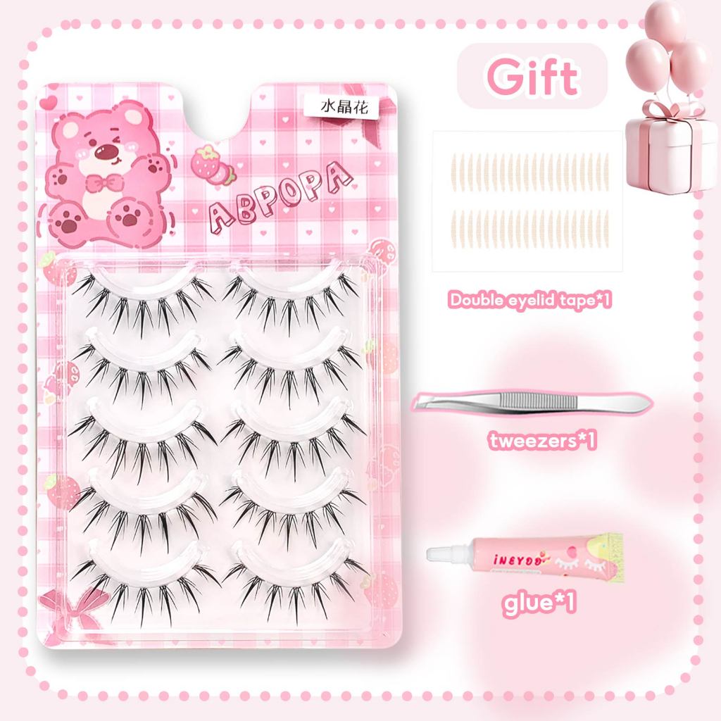 ABPOPA BEAUTY Ineyoo กาวฟรีขนตาปลอมคลัสเตอร์เดี่ยวหนาแน่นคุณภาพสูงการ์ตูน Eye Makeup10 แถว PAND-19