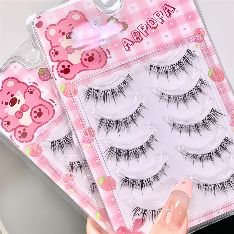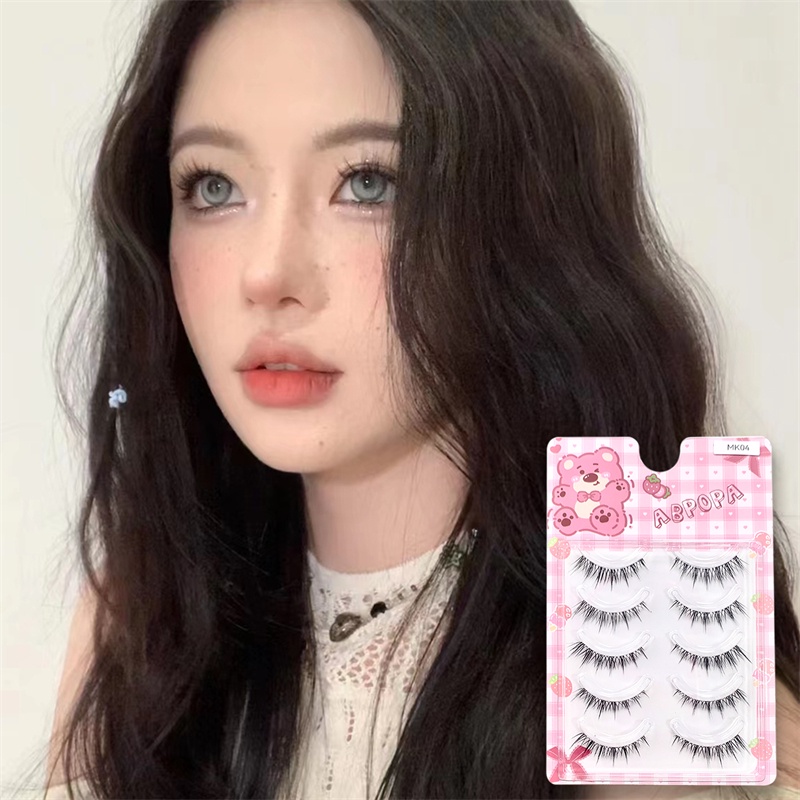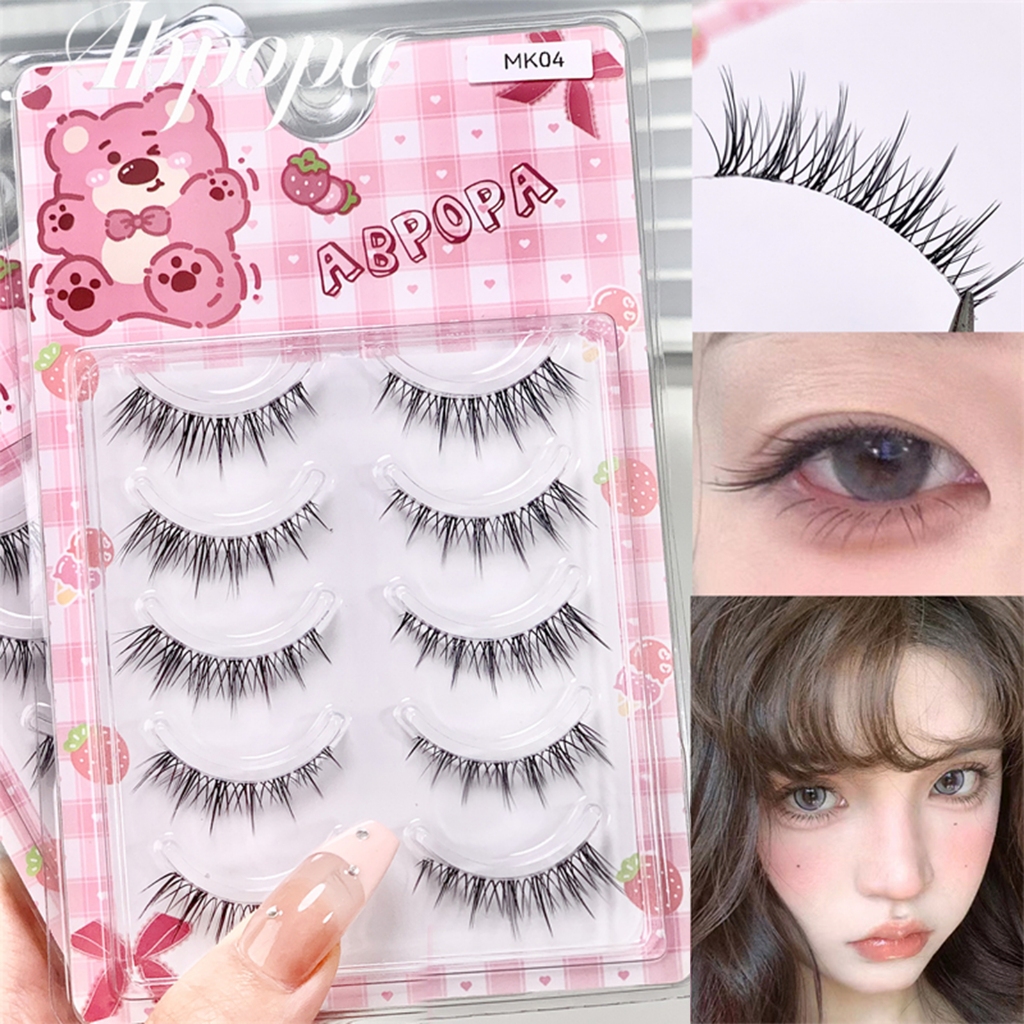 Abpopa ขนตาปลอม แบบตรง ยาวถึงหางตา และขยายดวงตา ห้าคู่ MK04