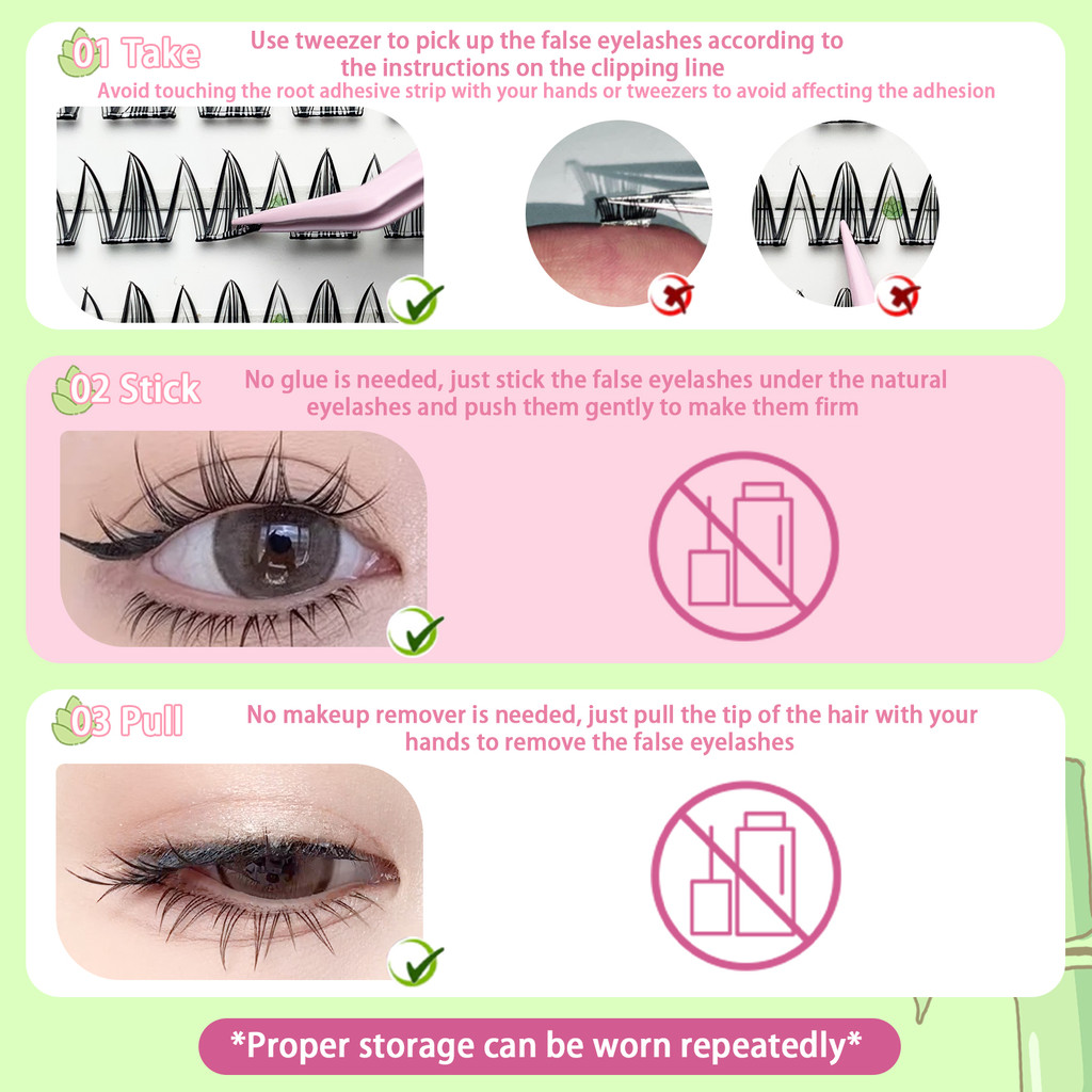 AARON1 กาวฟรีคลัสเตอร์ขนตา, Lashes Extension ขนตาปลอมแบบมีกาวในตัว, แฟชั่นหนาแน่นปุยยาวนาน Segmented ขนตา DIY