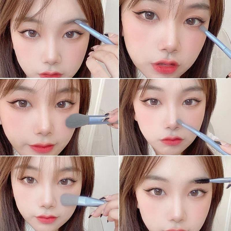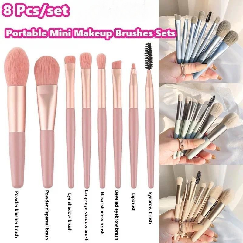 8 ชิ้น/เซ็ตมินิเดินทางสุภาพสตรีชุดแปรงแต่งหน้าแบบพกพาคอนซีลเลอร์ครีมแปรงเครื่องมือความงามแปรงแต่งหน้า