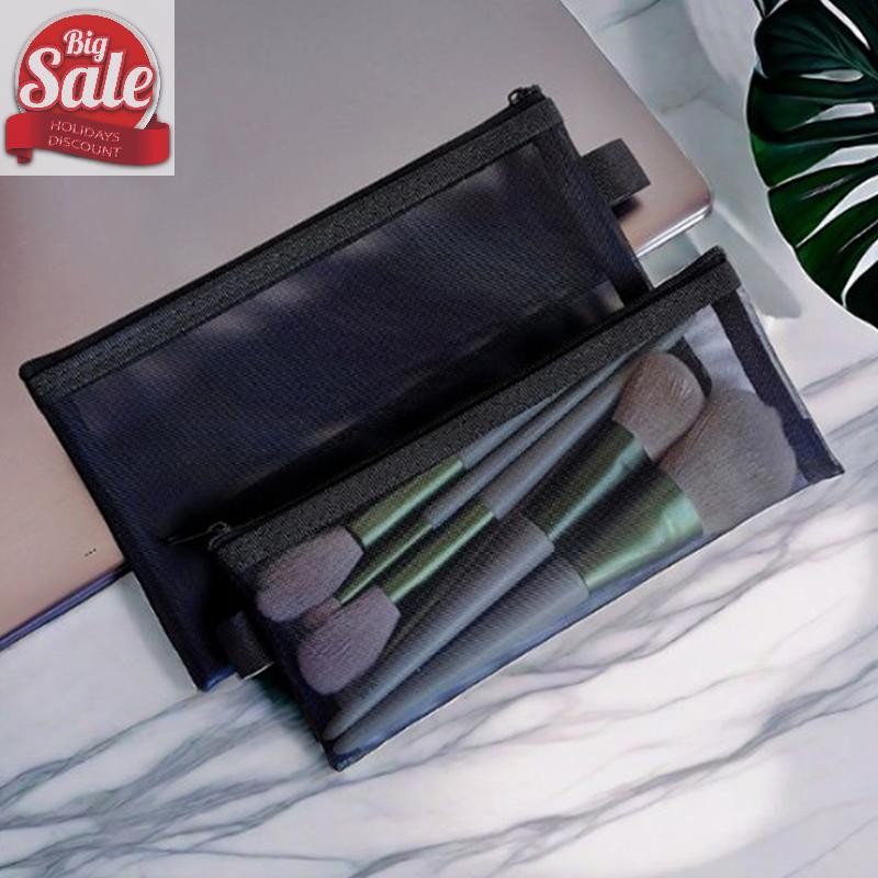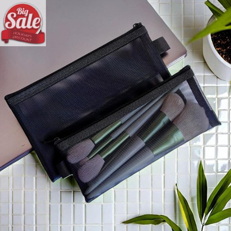 AF กระเป๋าแต่งหน้าลิปสติกแปรงแต่งหน้ากระเป๋านักเรียนตาข่ายสีกล่องดินสอ Ins Travel Cosmetic Organizer A