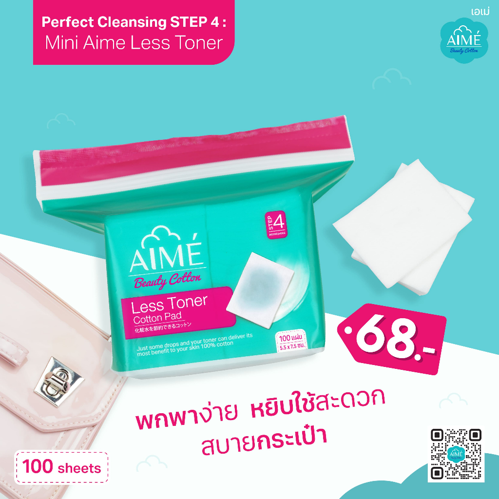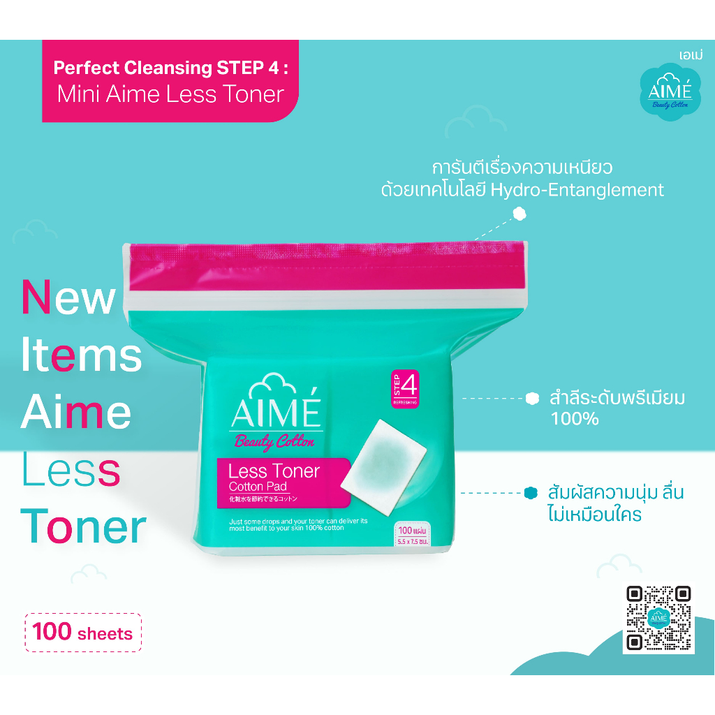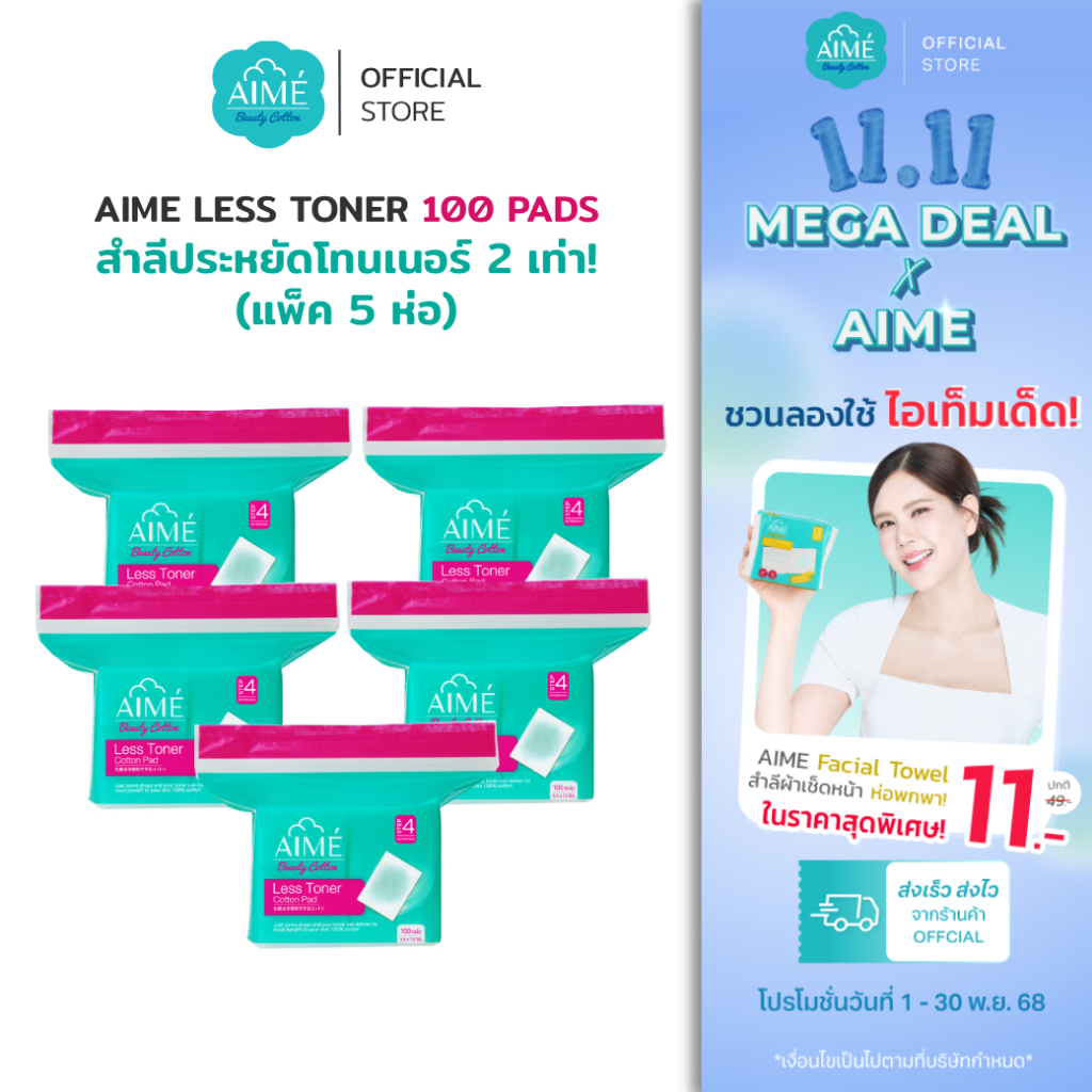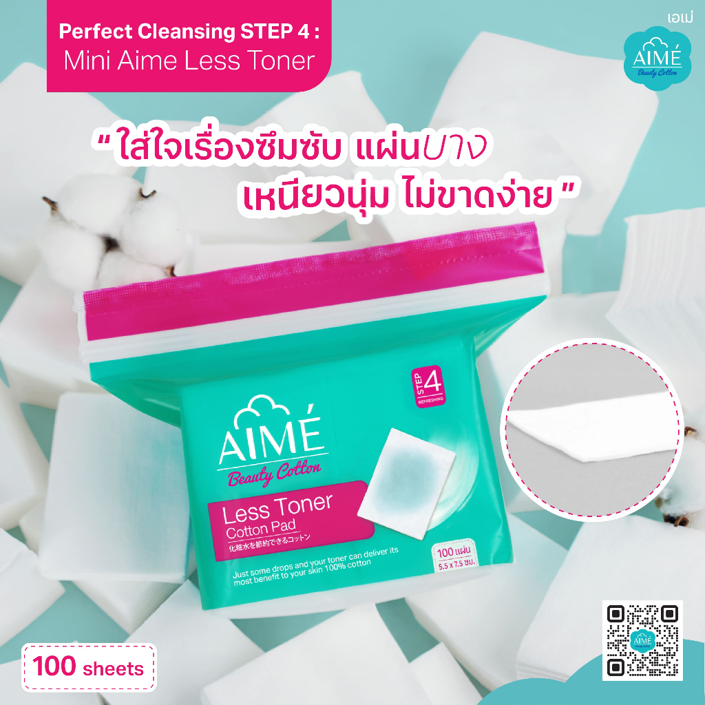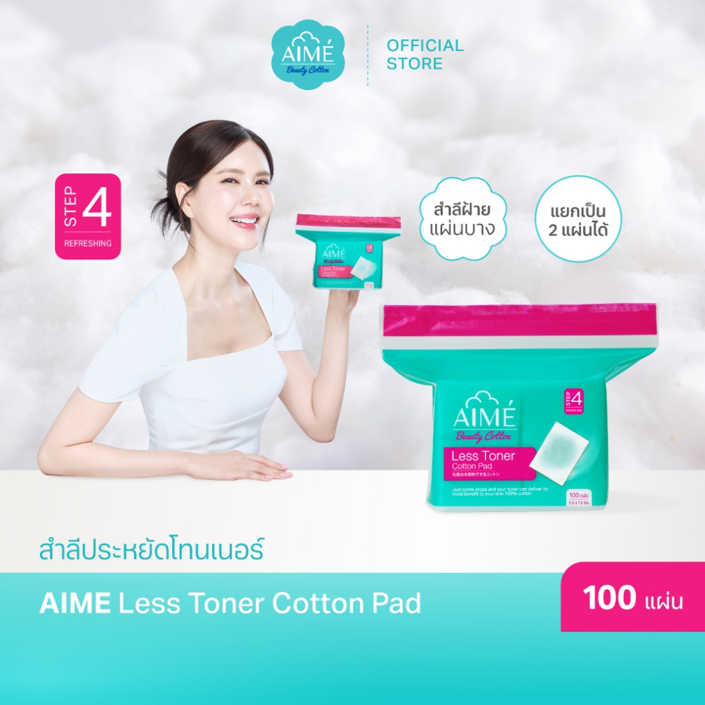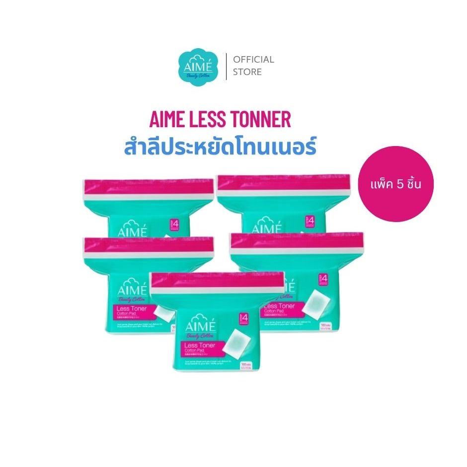 AIME Less Toner 100 แผ่น/ห่อ สำลีประหยัดโทนเนอร์ 2in1 แผ่นบางพิเศษแยกแผ่นได้ สำลีฝ้าย100% (x 5)