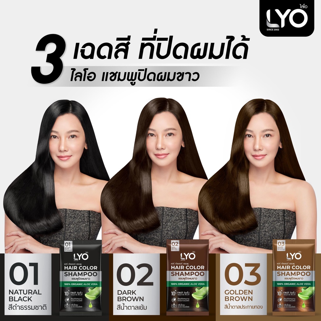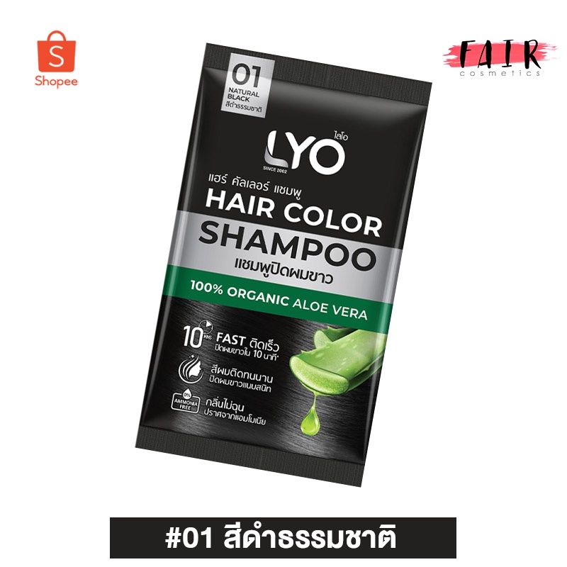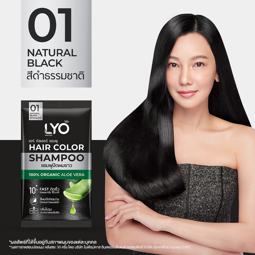 [01 สีดำธรรมชาติ] LYO Hair Color Shampoo ไลโอ แฮร์ คัลเลอร์ แชมพู [30 ml.] แชมพูปิดผมขาว