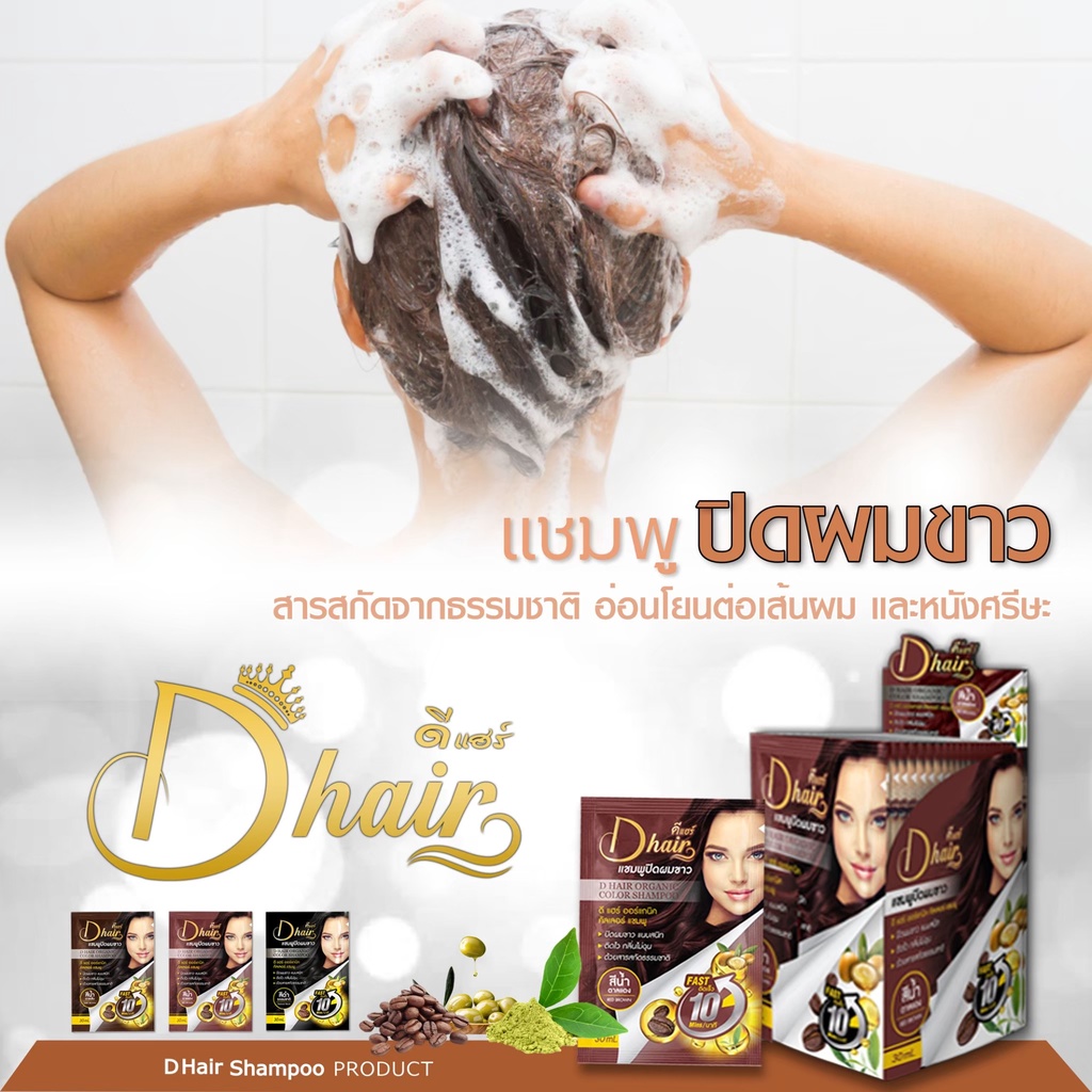(1 กล่อง 12 ซอง) DHair Organic Shampoo ดีแฮร์ แชมพูปิดผมขาว ยาย้อมผมแบบสระ ของแท้100% (มีให้เลือก 5 เฉดสี)