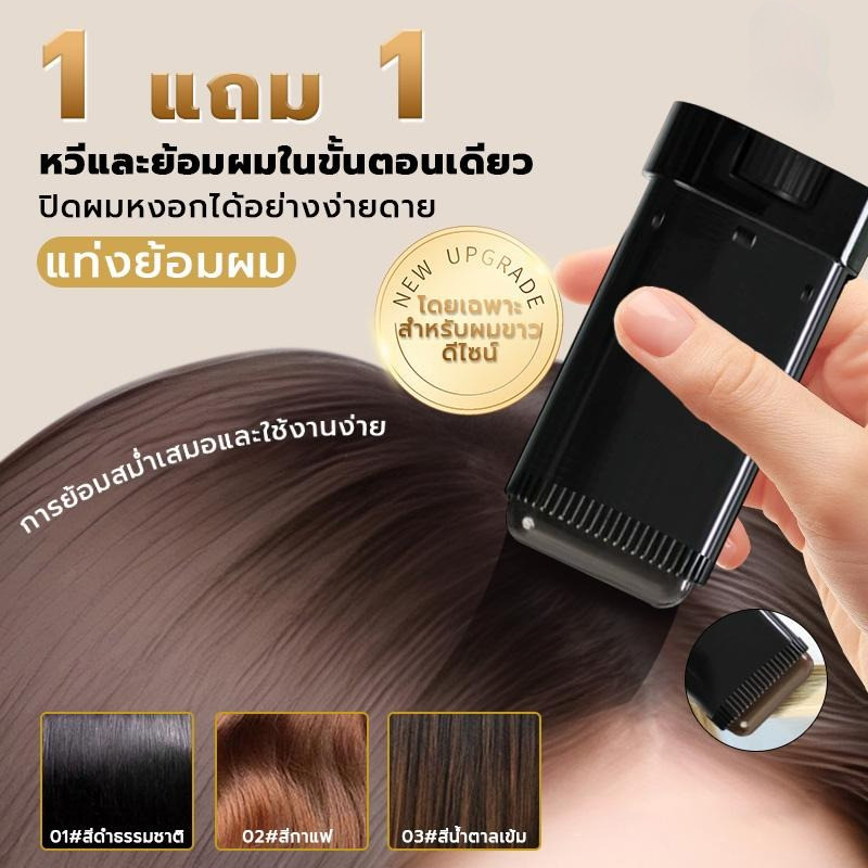 [ 1 แถม 1 ] ไม้กายสิทธิ์ย้อมผม สีดำ สีชั่วคราว ปกปิด ผมหงอก เครื่องมือจัดแต่งทรงผม สีขาว ใช้งานง่าย มี 3 สี