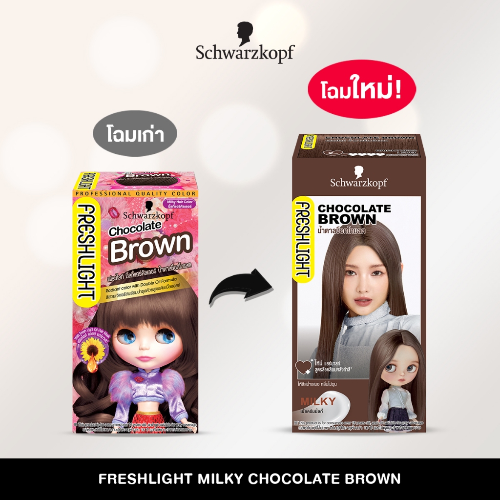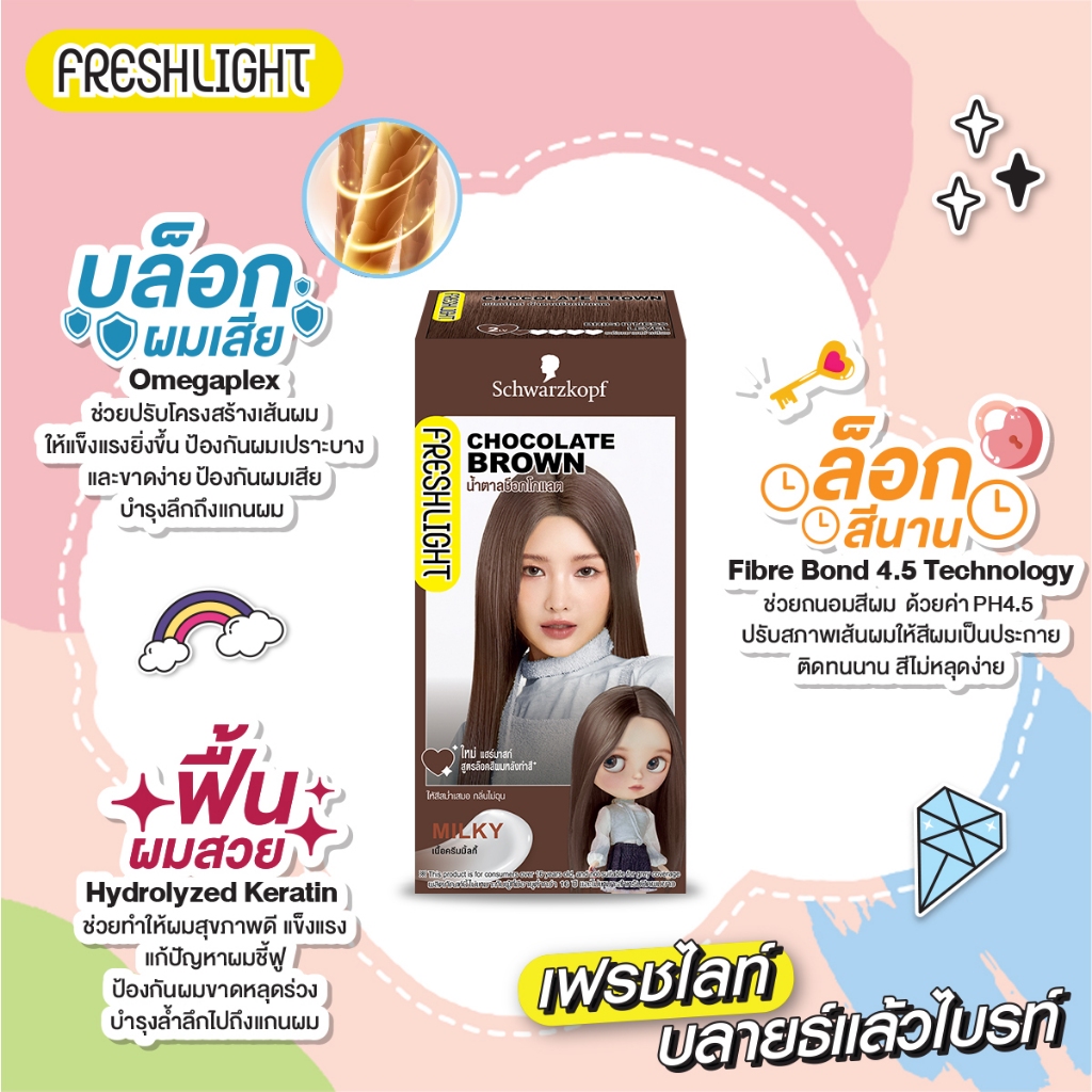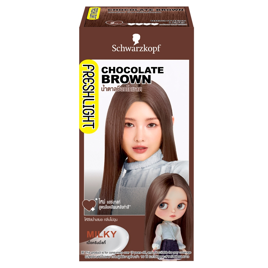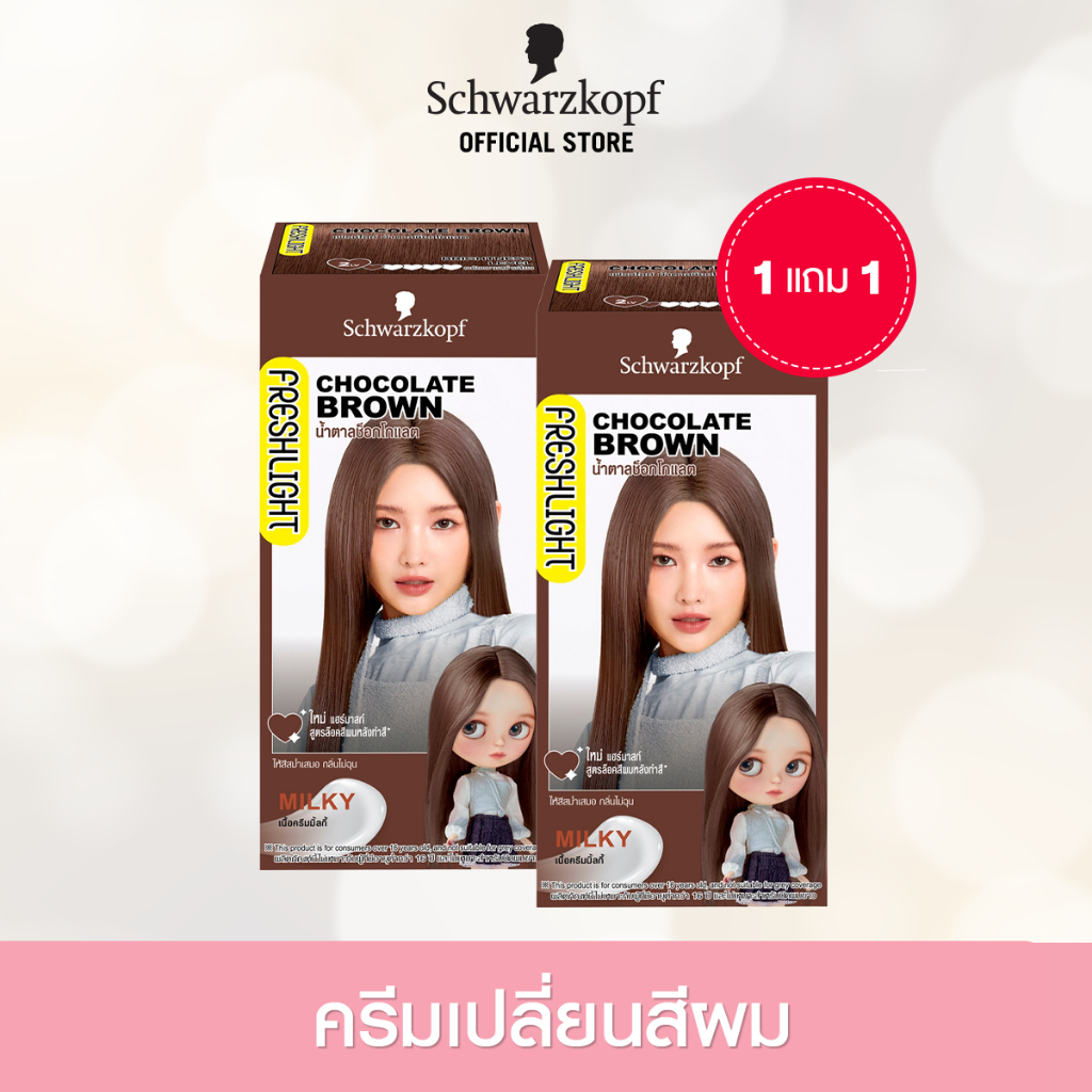 [1 แถม 1]Schwarzkopf Freshlight Milky Color CHOCOLATE BROWN ครีมเปลี่ยนสีผม สีน้ำตาลช็อกโกแล็ต 1 กล่อง
