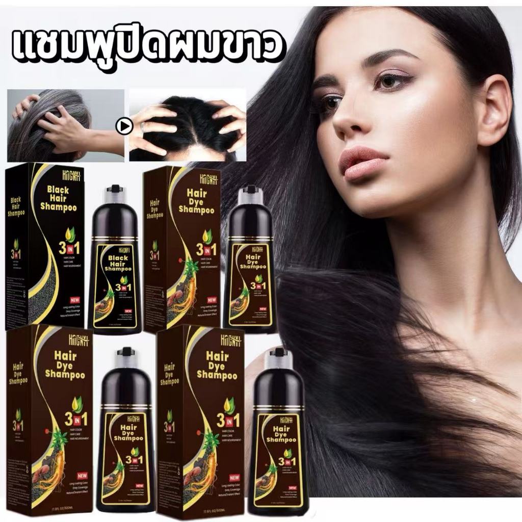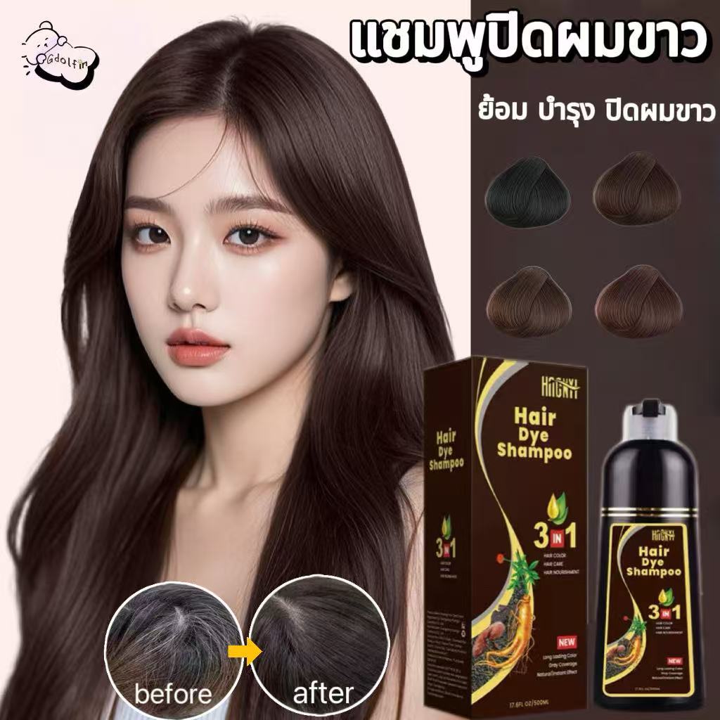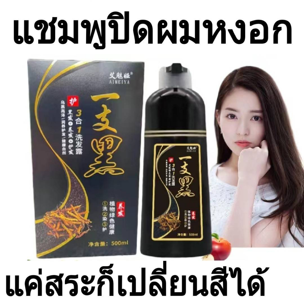 แชมพูปิดผมขาว แชมพูปิดผมหงอก ครีมย้อมผม hair dye Shampoo สมุนไพร ยาสระผมปิดผมขาว ย้อม บำรุง ปิดผมขาว 500ml