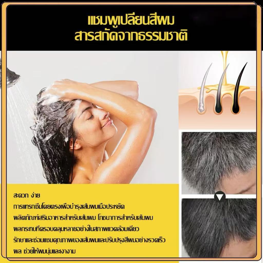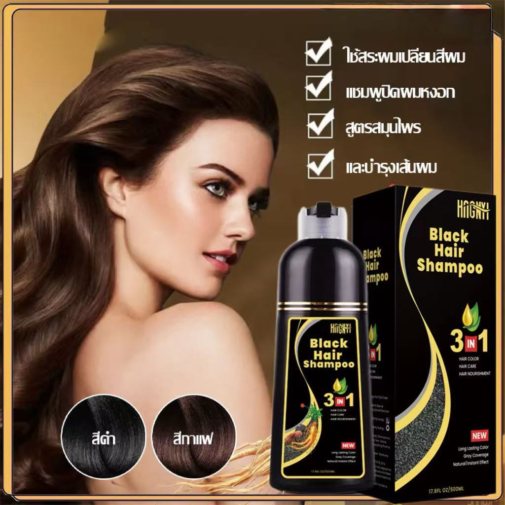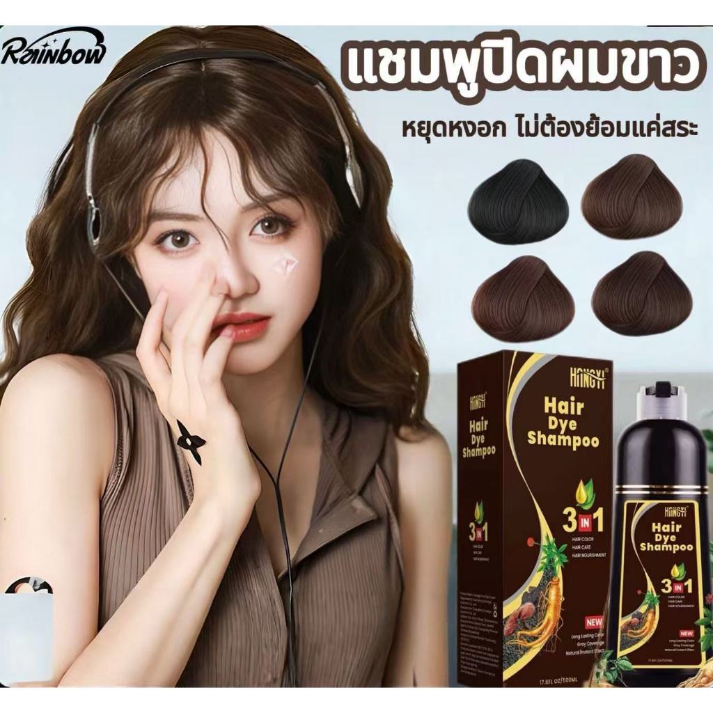 แชมพูปิดผมขาว แชมพูปิดผมหงอก ครีมย้อมผม hair dye Shampoo สมุนไพร ยาสระผมปิดผมขาว ย้อม บำรุง ปิดผมขาว 500ml
