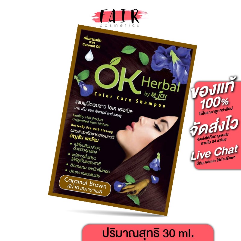 แชมพูปิดผมขาว OK Herbal โอเค เฮอเบิล [30 มล.] สีน้ำตาลคาราเมล