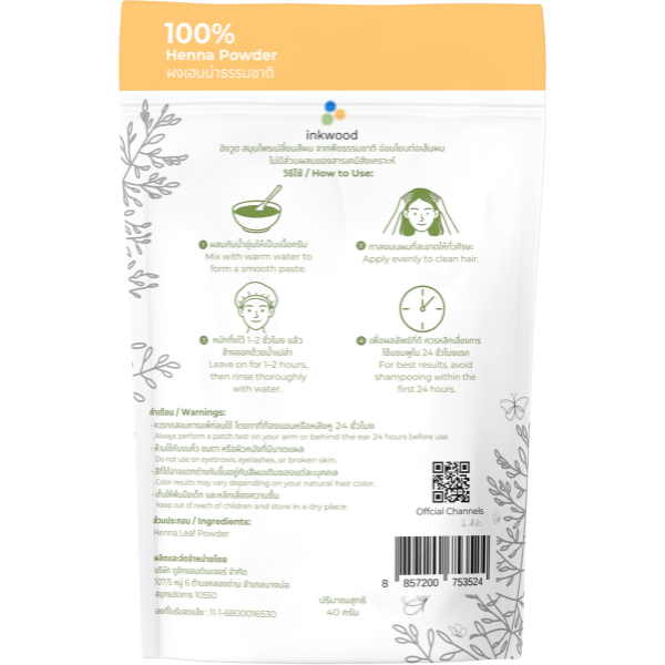 อิงวูด inkwood Henna Powder ผงเฮนน่า 100% สมุนไพรปิดผมขาว จากธรรมชาติ เปลี่ยนสีผม ปิดผมหงอก
