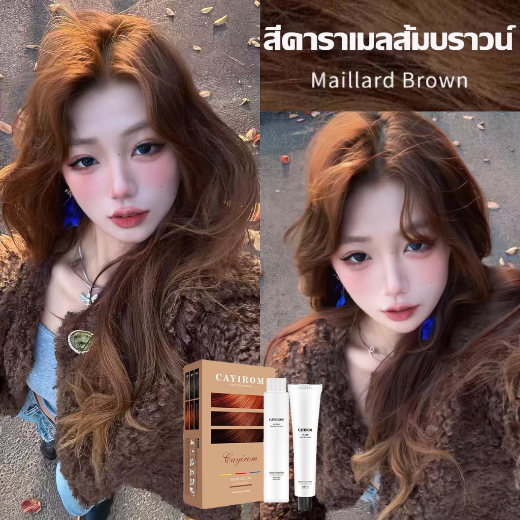 🎉เครื่องมือทําสีผมจะส่งฟรี ✨ ไม่ต้องฟอกสี สีย้อมผม คาราเมลส้ม สีติดทนยาวนานและไม่ซีดจาง ยาย้อมผม ย้อมผม ะไม่ซีด