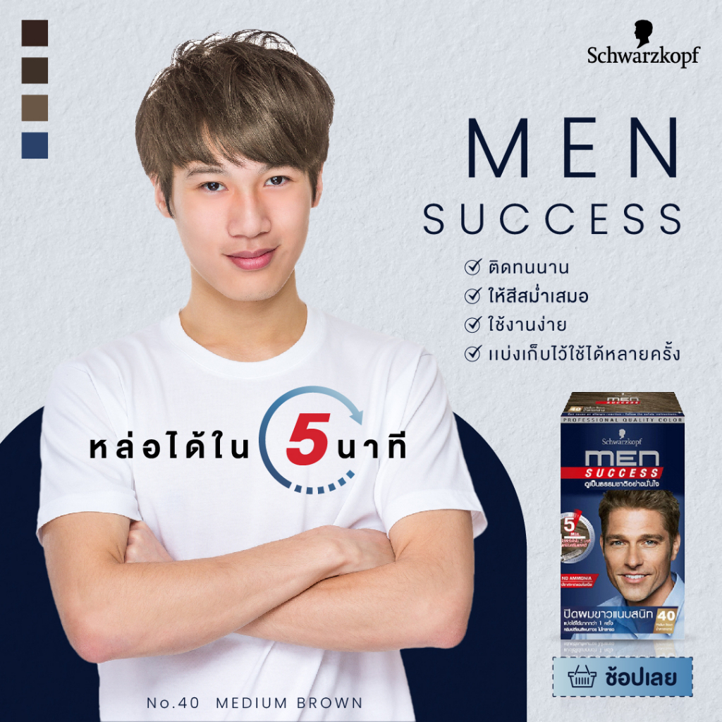 ถูก/แท้/มีไลฟ์ ครีมเปลี่ยนสีผม Schwarzkopf MEN SUCCESS ครีมปิดผมขาว ย้อมผม ปิดผมหงอก ปิดผมขาวสนิท แชมพูปิดผมขาว