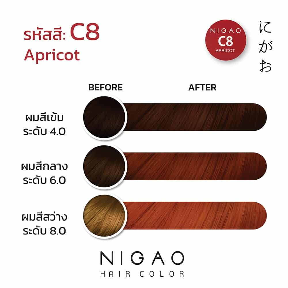 พร้อมส่ง NIGAO Hair Color C8 สีแอปริคอต นิกาโอะ ครีมเปลี่ยนสีผม สีย้อมผม ย้อมผม ไม่มีแอมโมเนีย ไร้กลิ่นฉุน