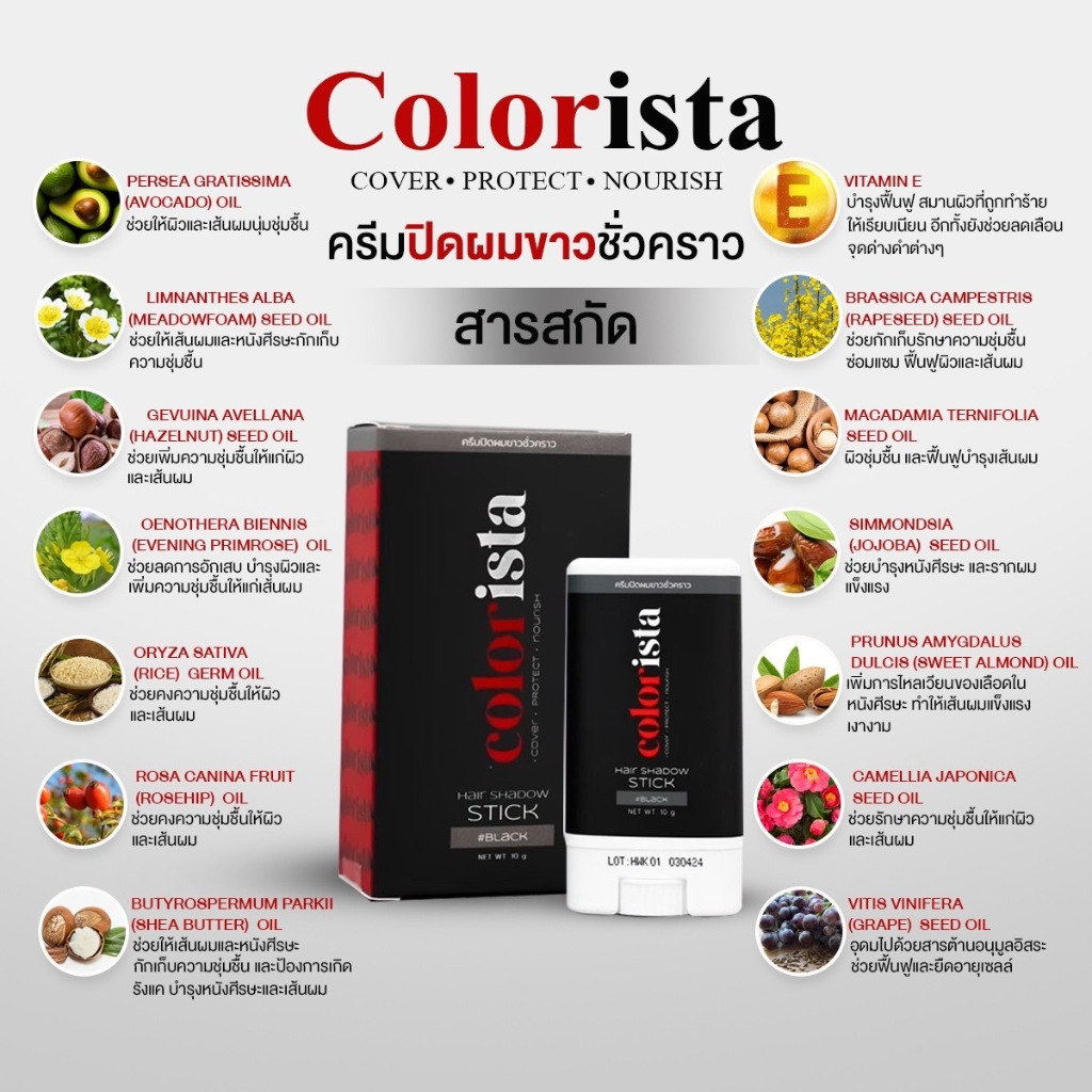 บาล์มปิดหงอก Colorista คัลเลอร์ลิสต้า ปิดสนิทใน 1 นาที พร้อมบำรุงรากผม ไม่เหนียวเหนอะ กันน้ำ กันเหงื่อ ใช้ได้ทุกวัน 10 g