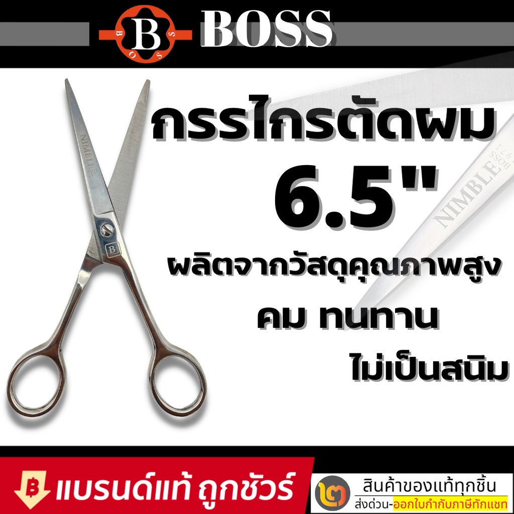 BOSS กรรไกร กรรไกรตัดผม ขนาด 6.5 นิ้ว / BOSS กรรไกรซอย กรรไกรซอยผม กรรไกรขนาด 6.5 นิ้ว / BOSS กรรไกรตัด&ซอย ขนาด 6.5นิ้ว