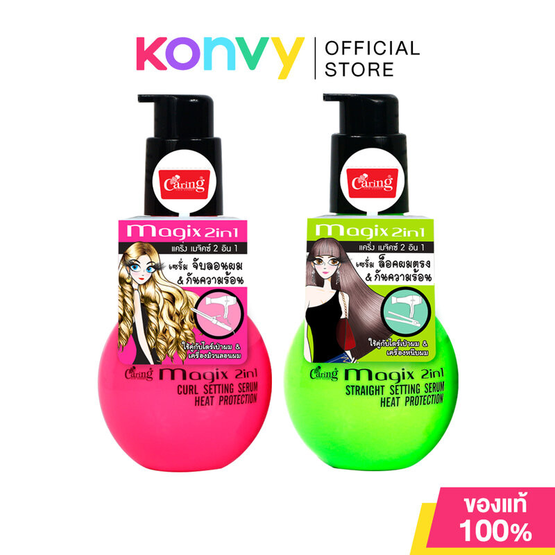 Caring Magix 2 in1 Setting Serum & Heat Protection แคริ่ง เซรั่มเซทผมพร้อมบำรุงและกันความร้อน 100ml (Curl/Straight)