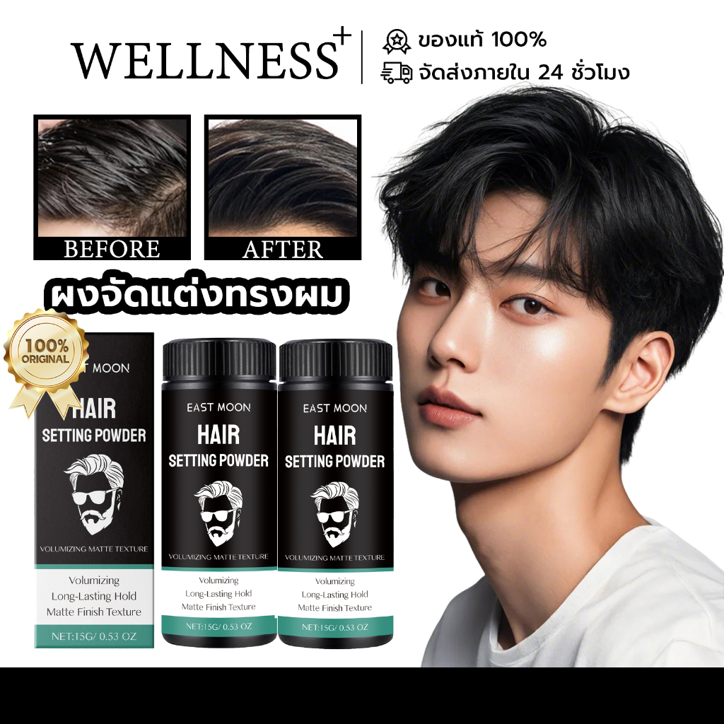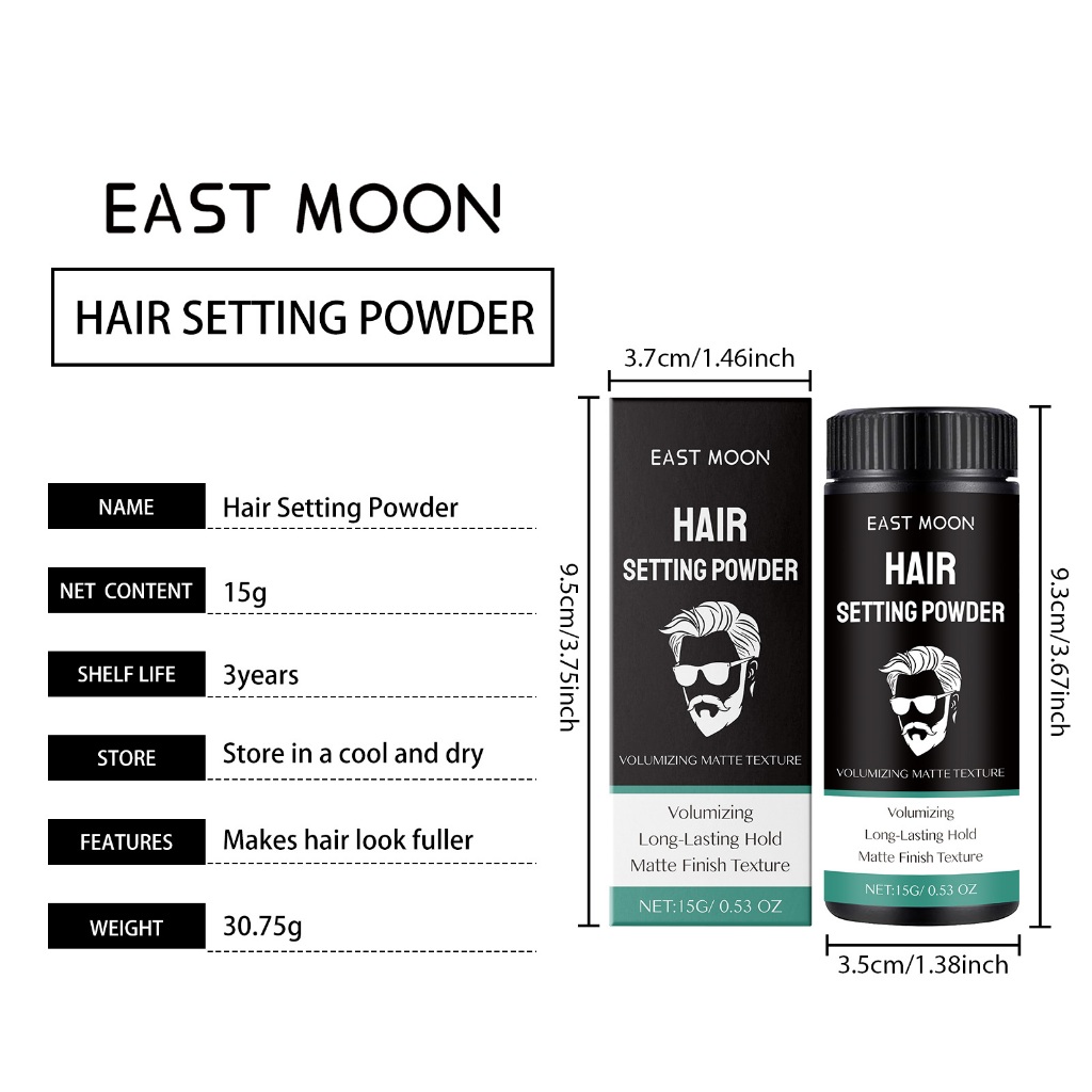 East Moon ผงจัดแต่งทรงผม ผงเพิ่มโวลลุ่ม แป้งจัดแต่งทรงผมฟู สดชื่นและเบาสบาย เพิ่มน้ำหนักผม ไม่มันเงา ยึดทรงนาน