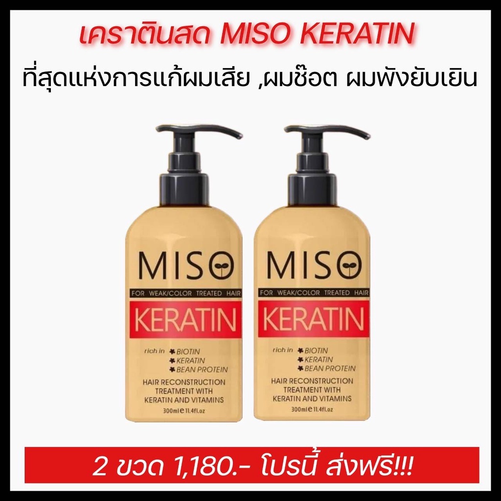 MISO-เคราตินสดแท้ แก้เสียมาก-ทดแทนการยืดผมที่ผ่าน ฟอก ย้อมสีบ่อย ปลายช็อตเห็นผลทันทีครั้งแรกที่ใช้