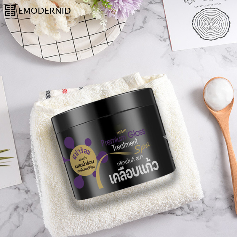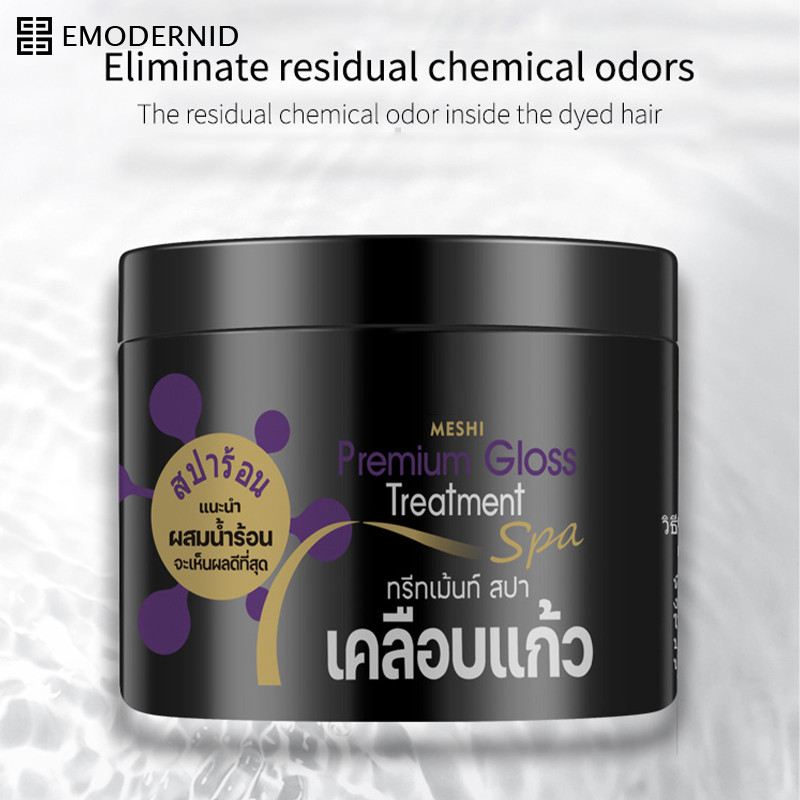 MESHI gloss treatment ทรีทเม้นท์สปาเคลือบแก้ว เคลือบแก้วสูตรพลีเมี่ยมกระปุกดำ-em