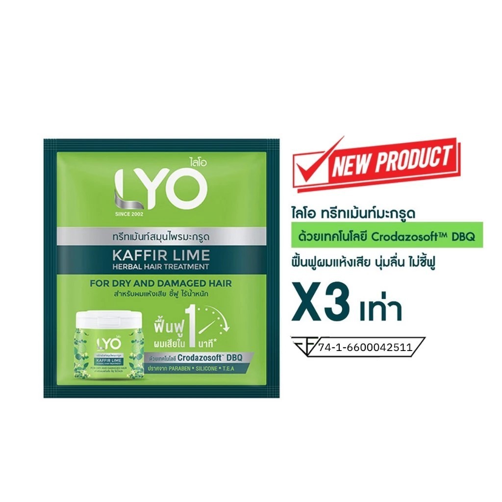 LYO ไลโอ KAFFIR LIME HERBAL HAIR TREATMENT ทรีทเมนท์สมุนไพรมะกรูด แบบพกพา 1กล่อง (บรรจุ 6ซอง) ส่งฟรี