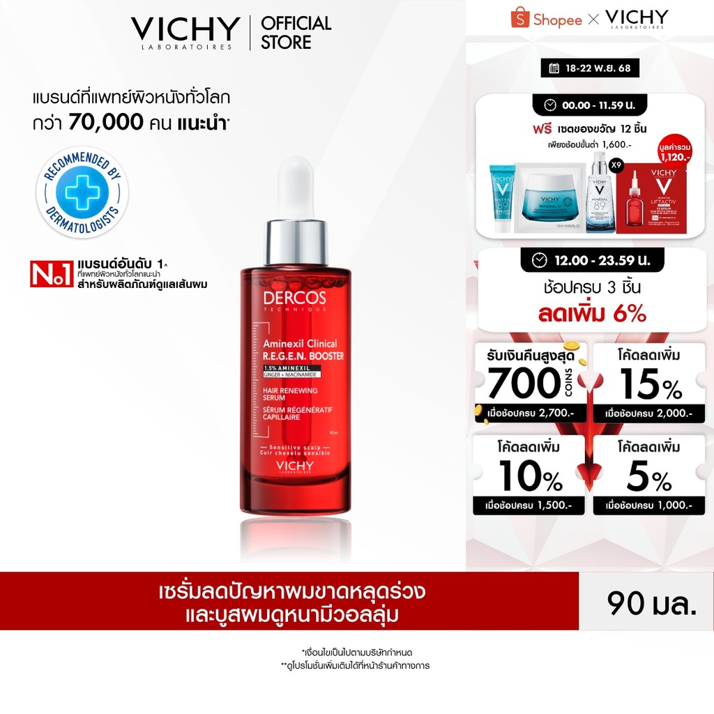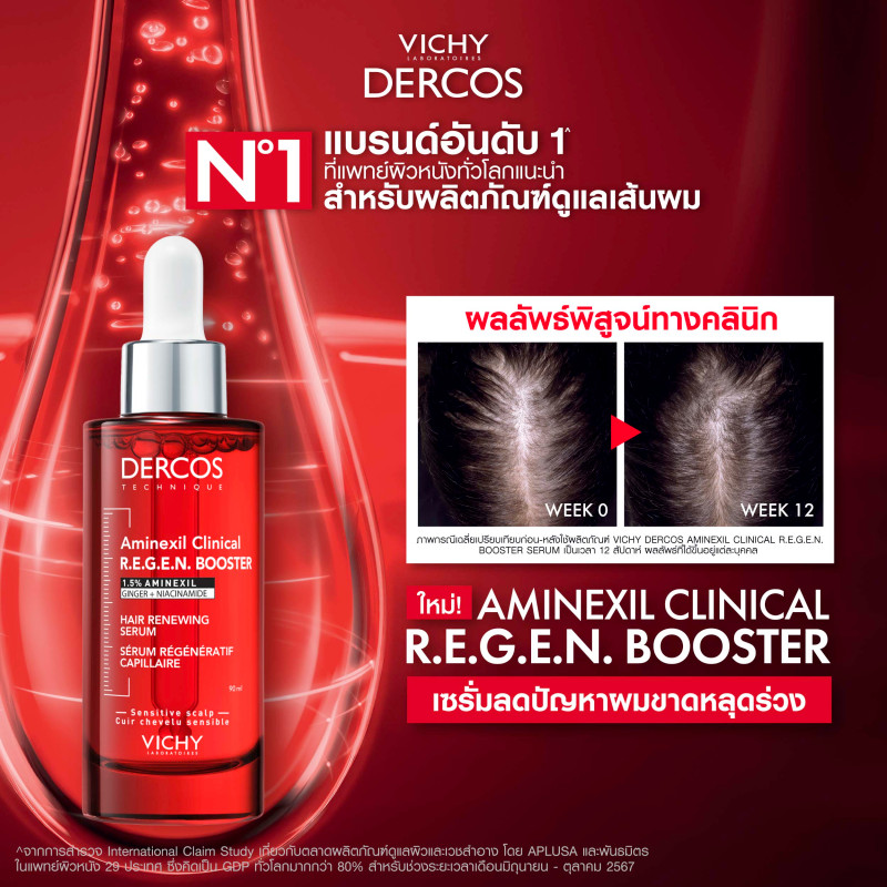 วิชี่ เดอคอส VICHY DERCOS AMINEXIL CLINICAL R.E.G.E.N. BOOSTER SERUM เซรั่มบำรุงลดปัญหาผมขาดหลุดร่วง