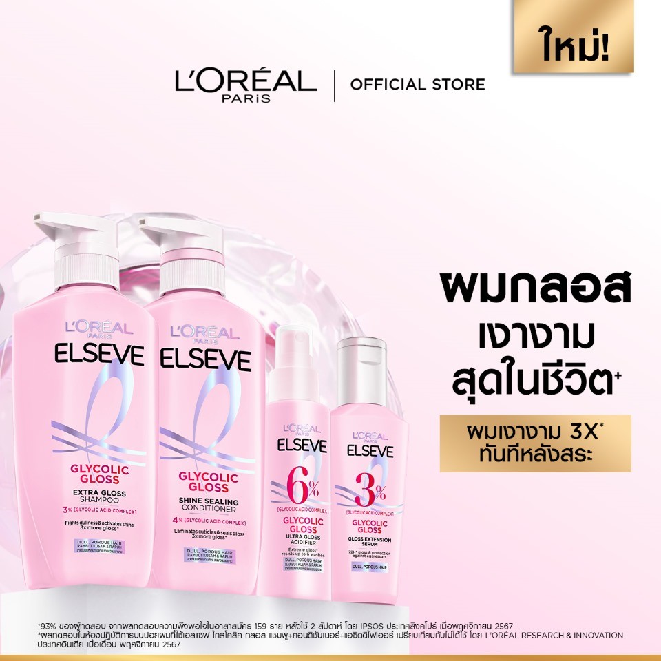 ลอรีอัล ปารีส เอลแซฟ ไกลโคลิค กลอส แชมพู 400มล .+คอนดิชั่นเนอร์375 ml. +แอซิดดิไฟเออร์ 100 ml. +เซรั่ม 80 ml.
