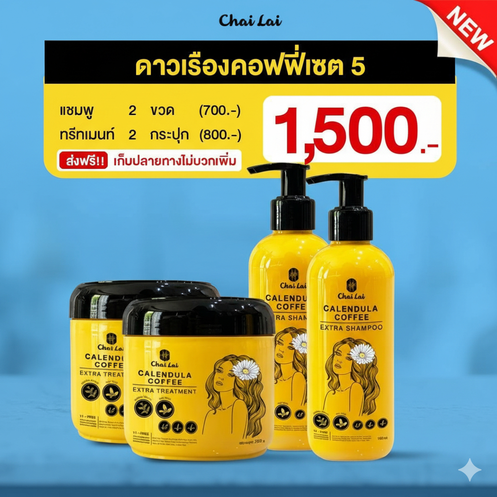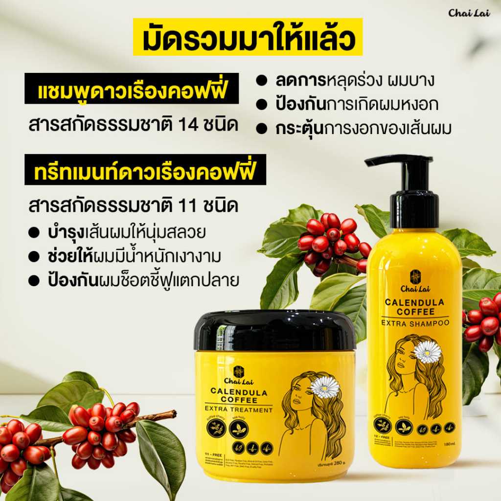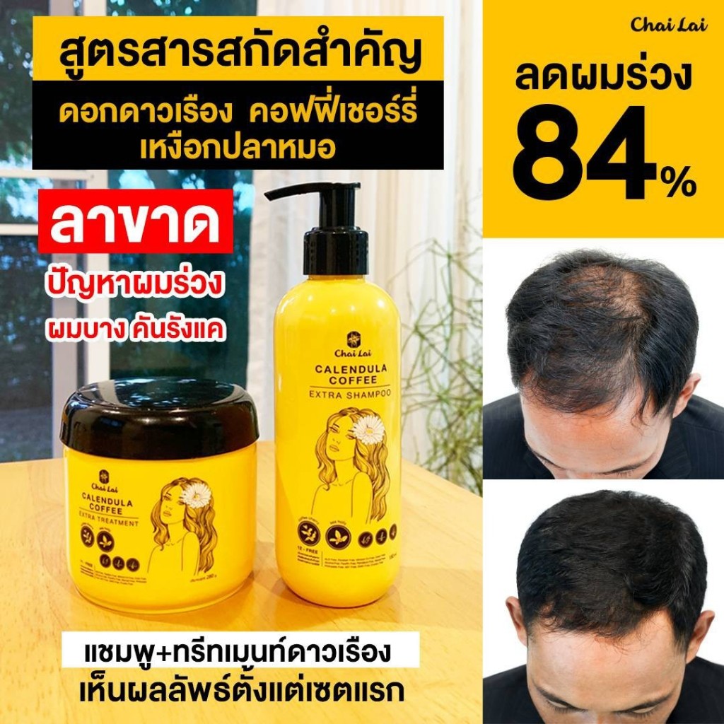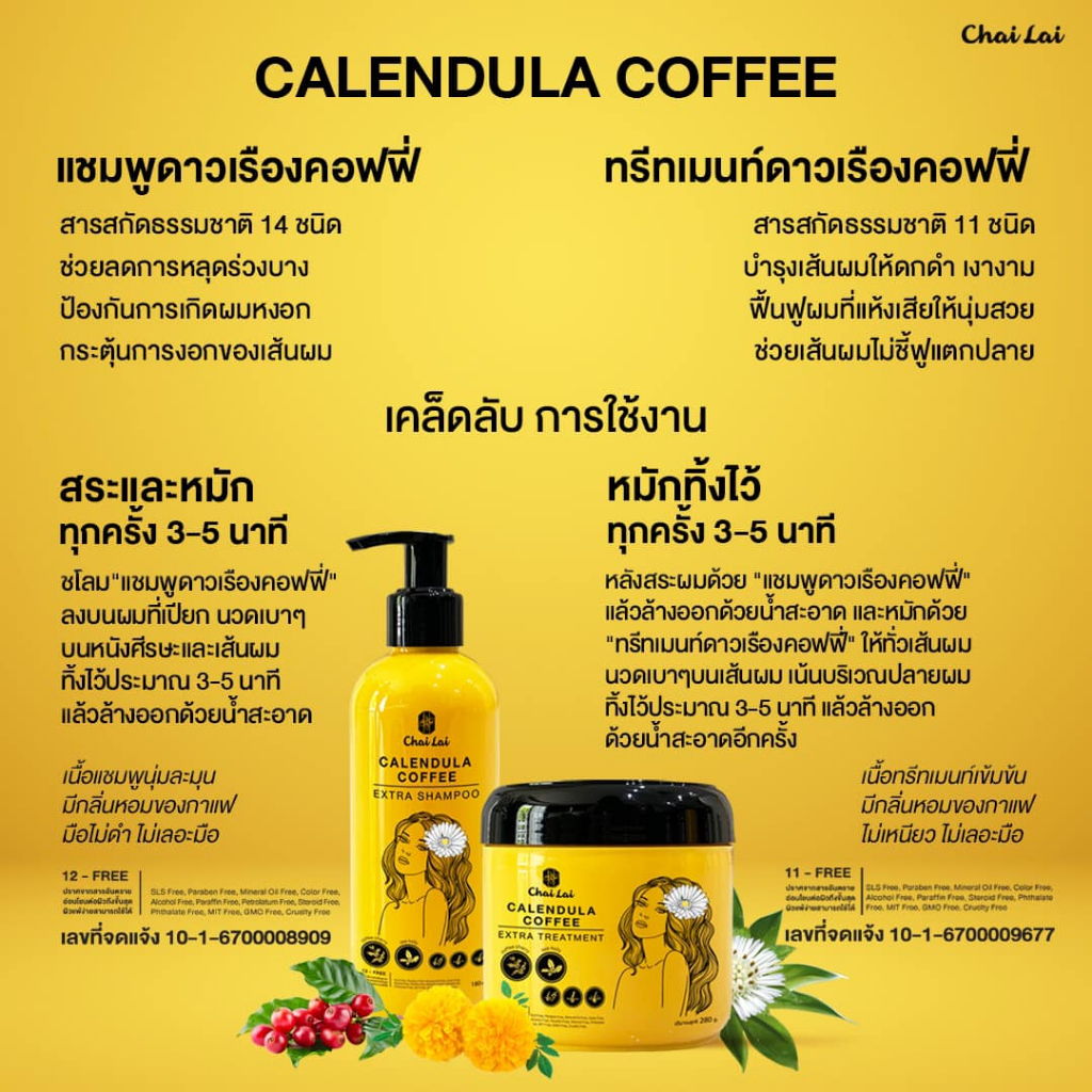 แชมพูดาวเรือง (2 ขวด) + ทรีทเม้นท์ดาวเรือง ไฉไล Chai lai Calendula Hair Treatment ทรีทเมนต์ผมดาวเรือง ( 2 กระปุก )