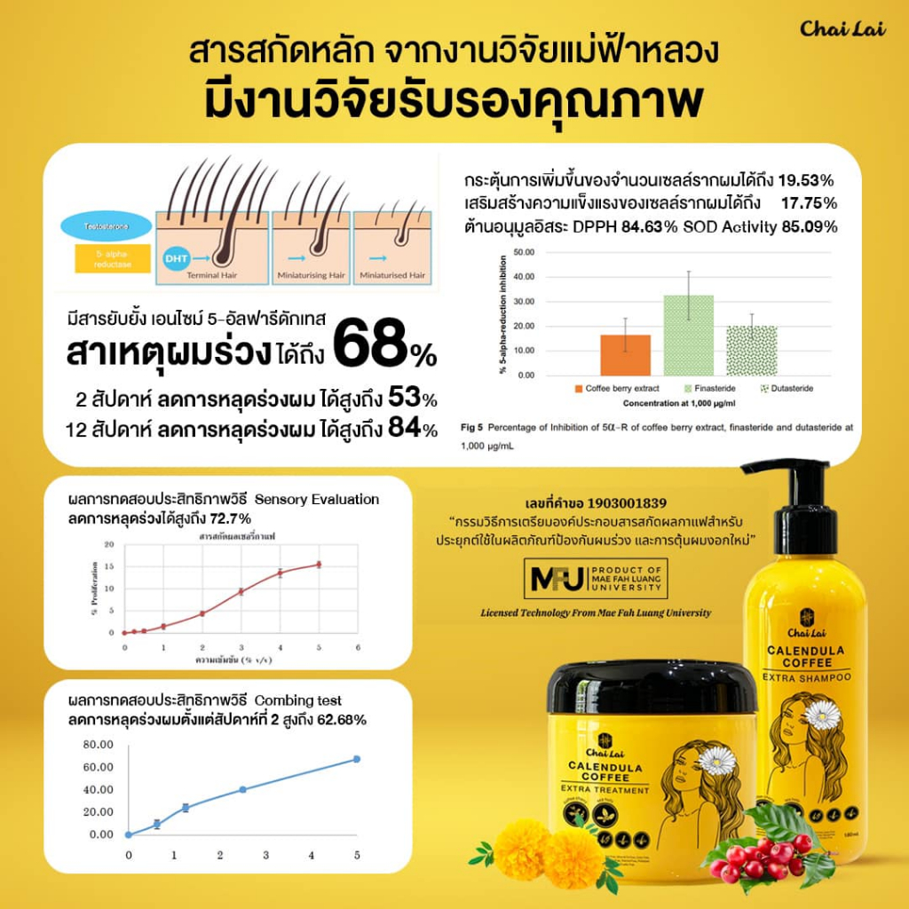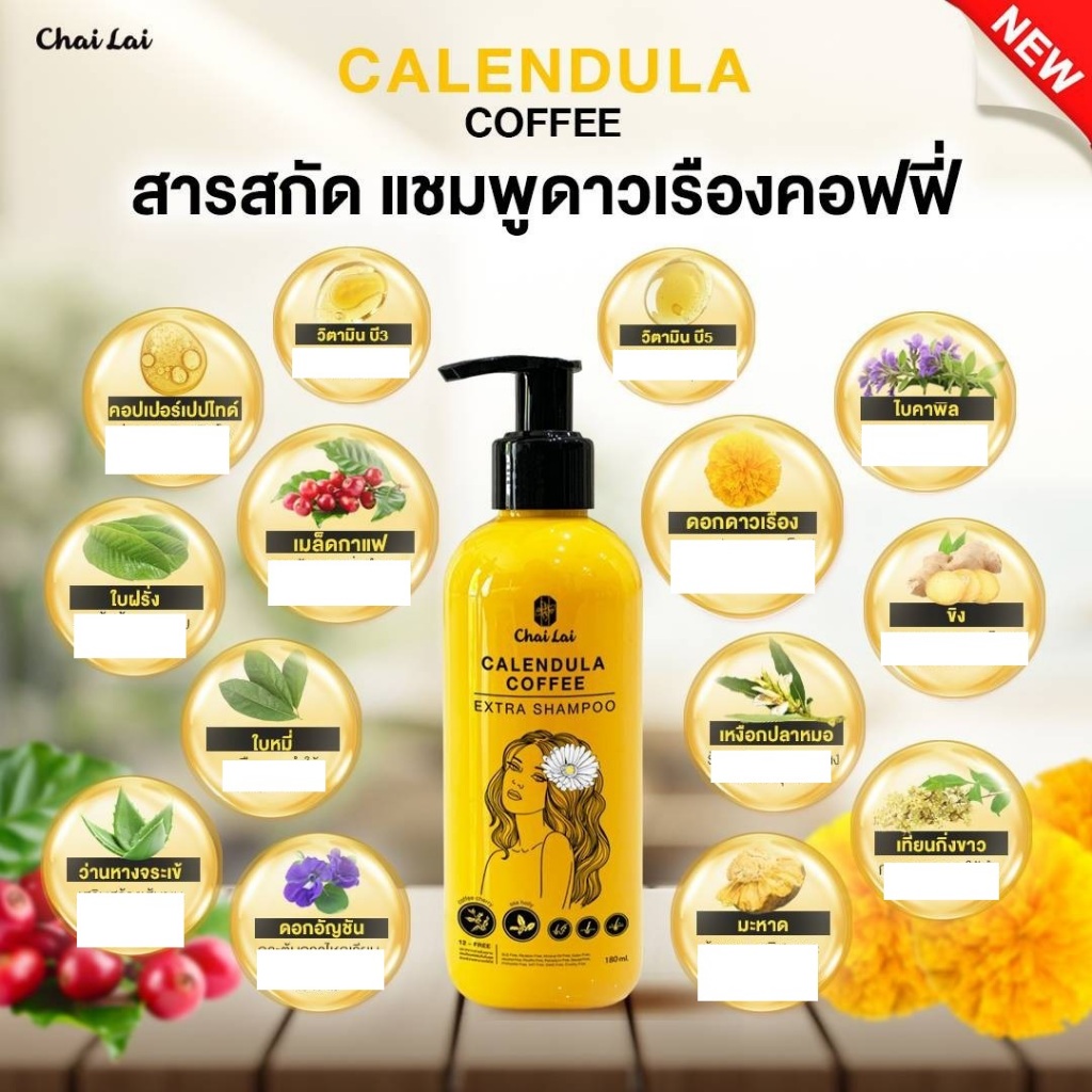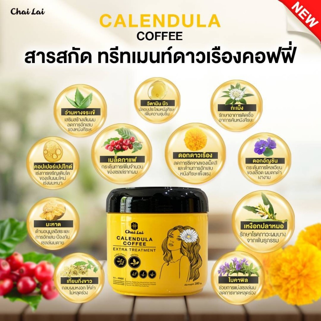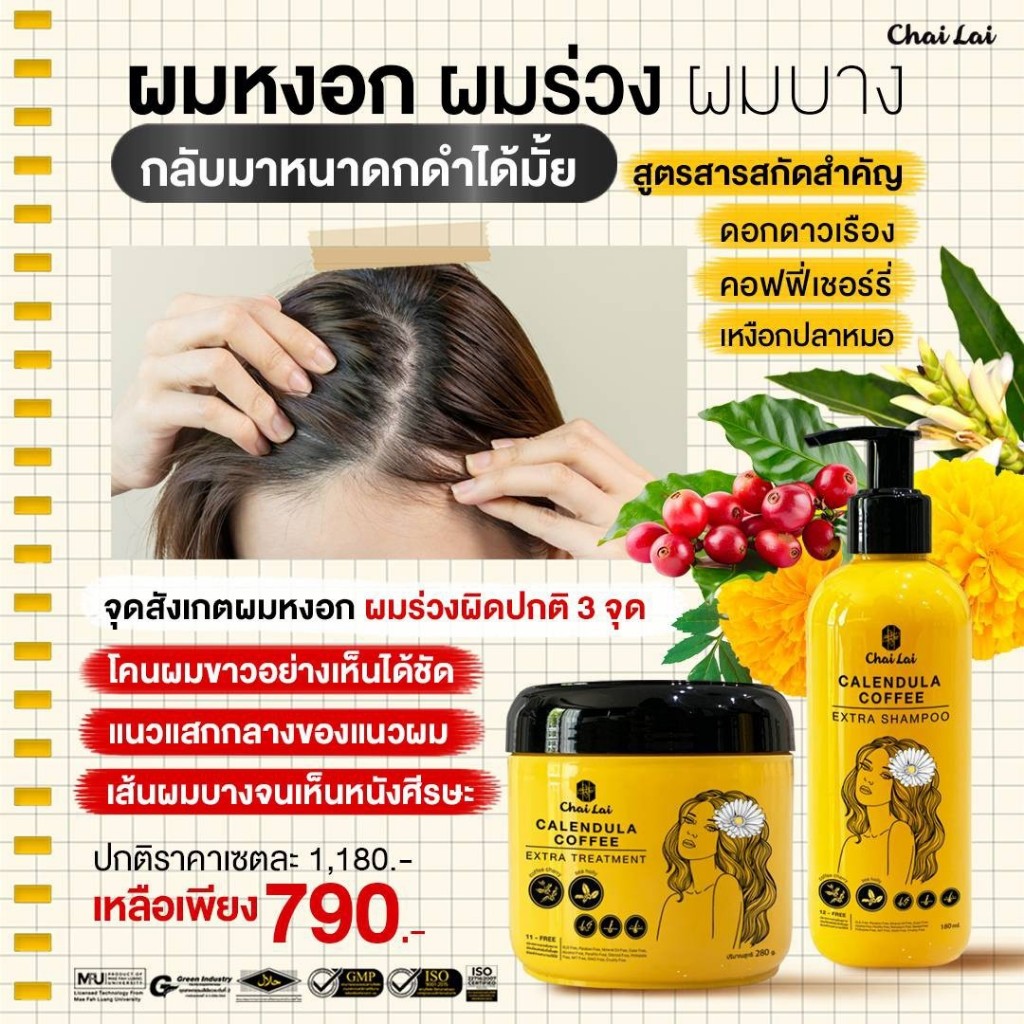 แชมพูดาวเรือง (2 ขวด) + ทรีทเม้นท์ดาวเรือง ไฉไล Chai lai Calendula Hair Treatment ทรีทเมนต์ผมดาวเรือง ( 2 กระปุก )