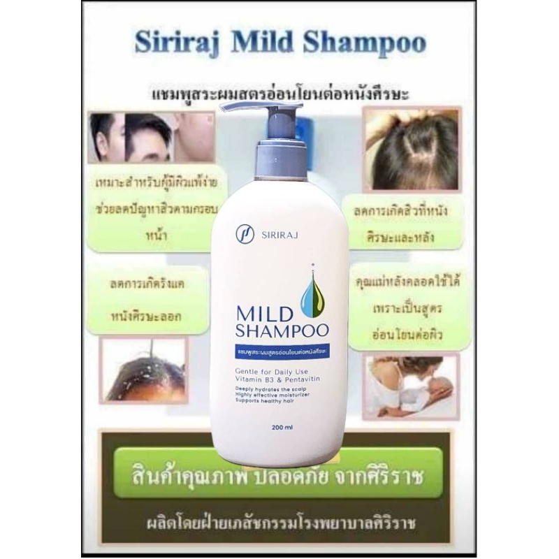 แชมพูสระผมศิริราช ; Siriraj Mild Shampoo สูตรอ่อนโยนต่อหนังศีรษะ (สินค้าขายดีที่สุด แท้100%)