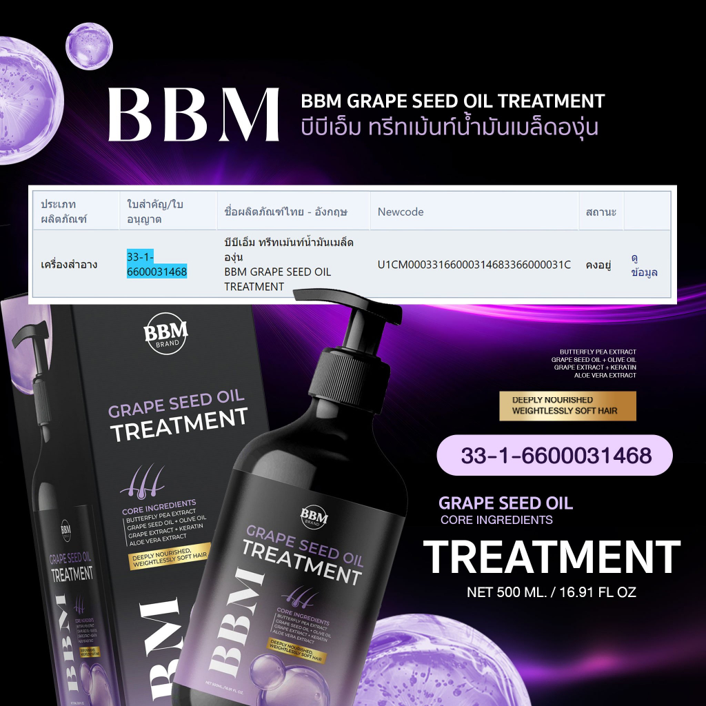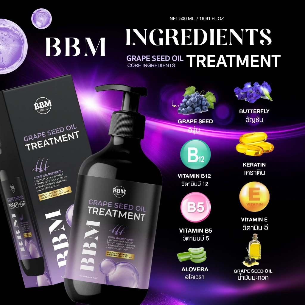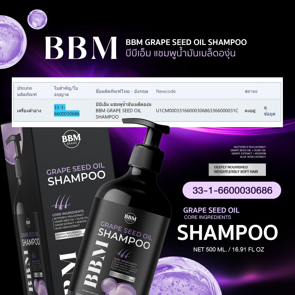 แชมพูองุ่นอัญชัน BBM แชมพูน้ำมันเมล็ดองุ่น แชมพูอัญชัน ทรีทเม้นท์น้ำมันเมล็ดองุ่น