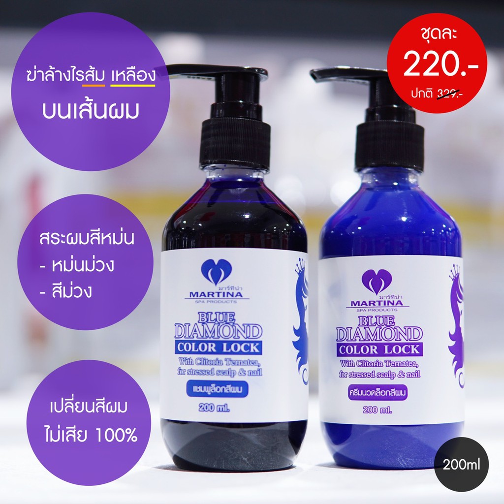 [ สินค้าขายดี‼️ ของแท้💯 ] ขนาดกลาง Martina แชมพู/ครีมนวด บลูไดมอนด์ ฆ่าล้างสีส้ม-แดงบนเส้นผม 200ml.