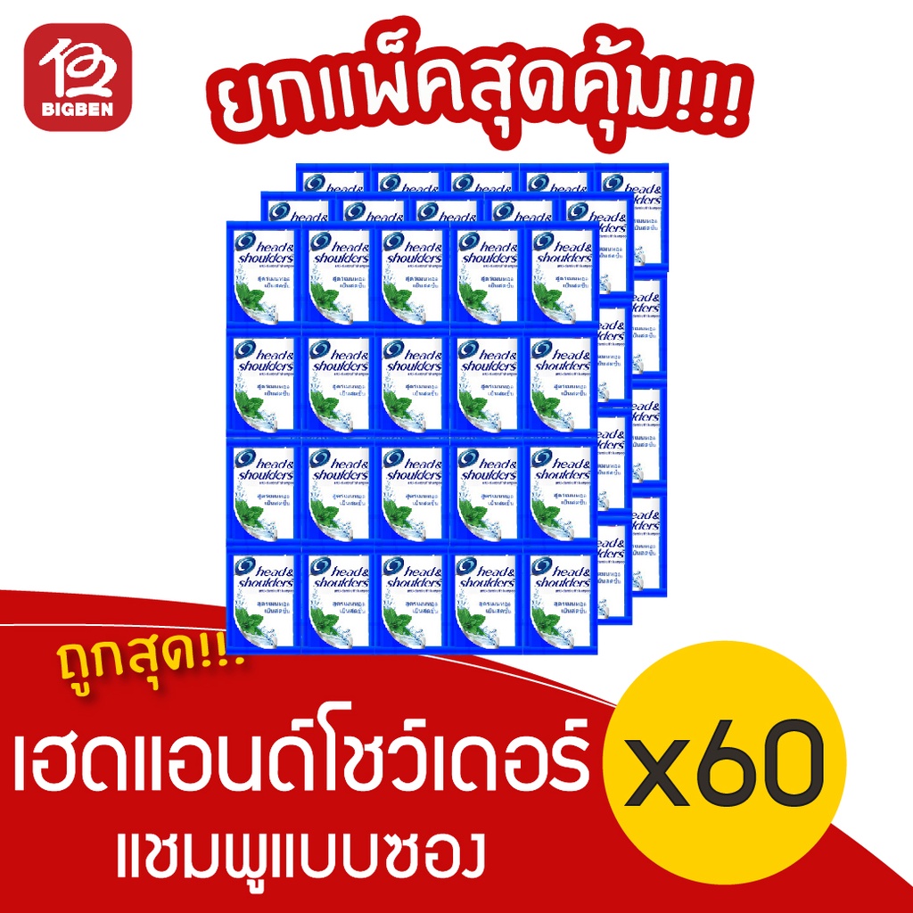 [1 แพ็ค] Heads & Shoulder เฮดแอนด์โชว์เดอร์ แชมพู สูตรคูลเมนทอล (5 มล. x 60 ซอง/แพ็ค)