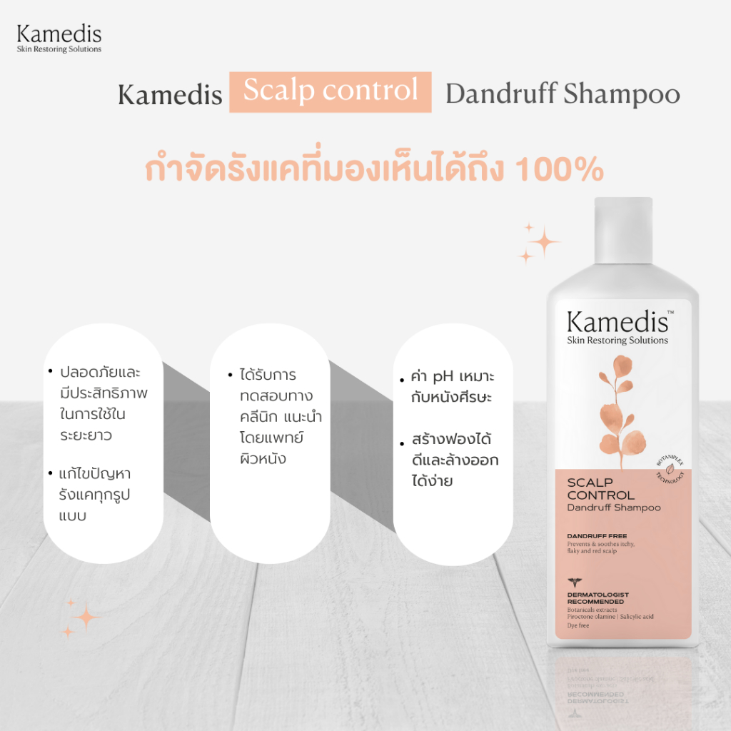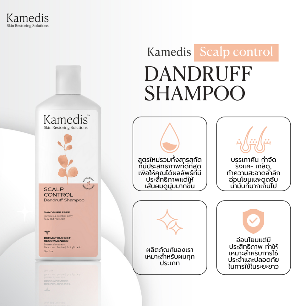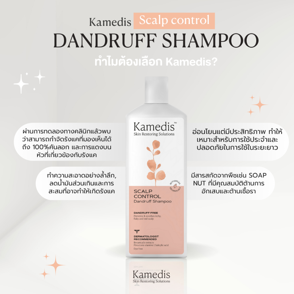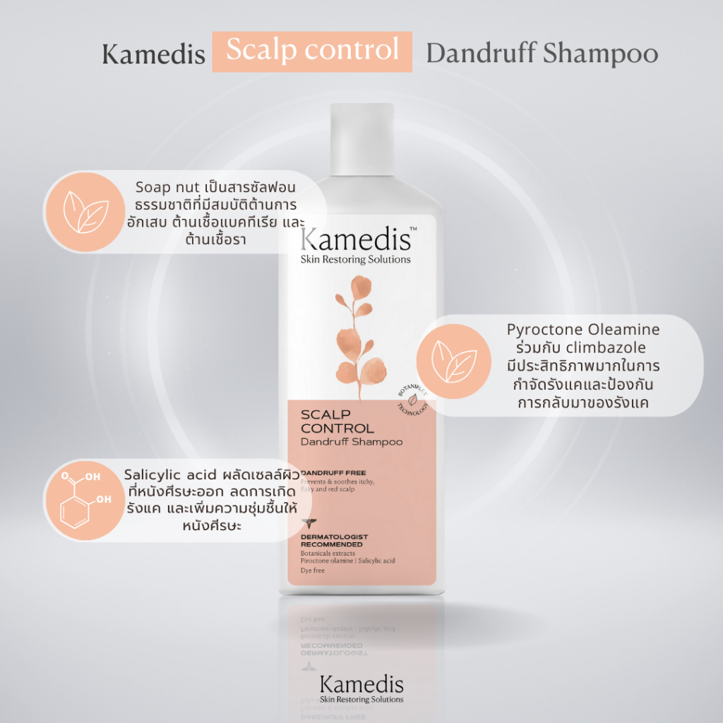 [ P ] ยืนหนึ่ง แชมพูขจัดรังแคและอาการคันศรีษะ Kamedis Dandruff Shampoo 200 ml