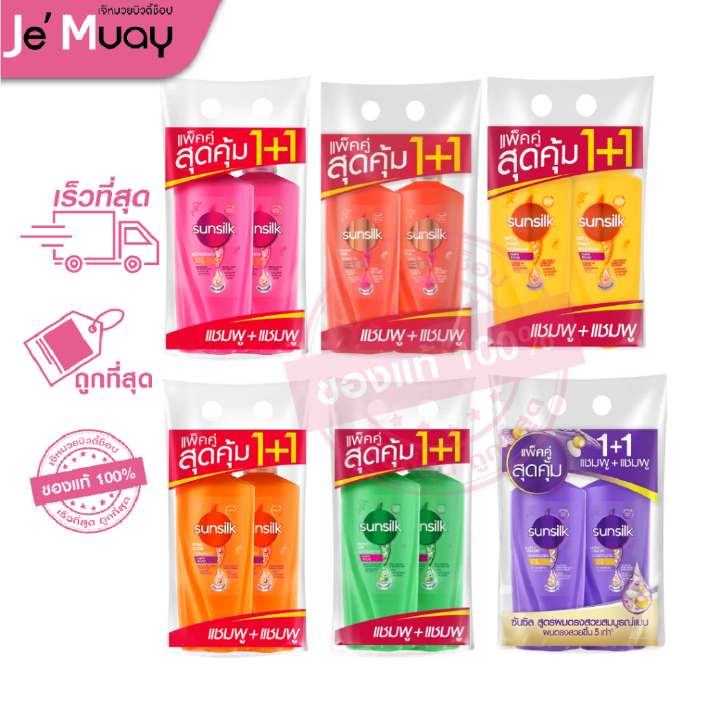 [ แพ็คคู่สุดคุ้ม ] SUNSILK ซันซิล แชมพู+แชมพู ขวดปั๊มครบทุกสูตร ขนาด 325 ML. / 2 ขวด