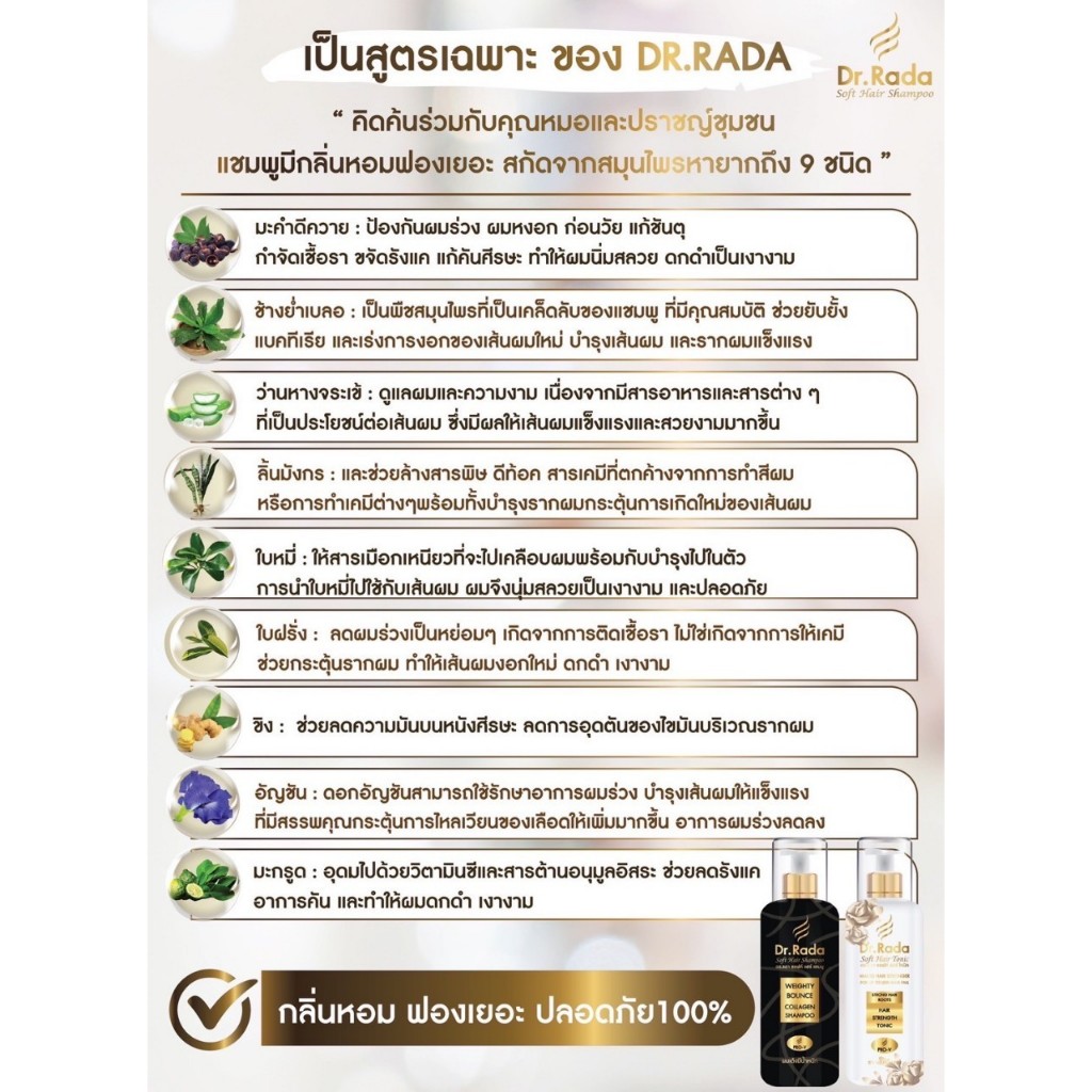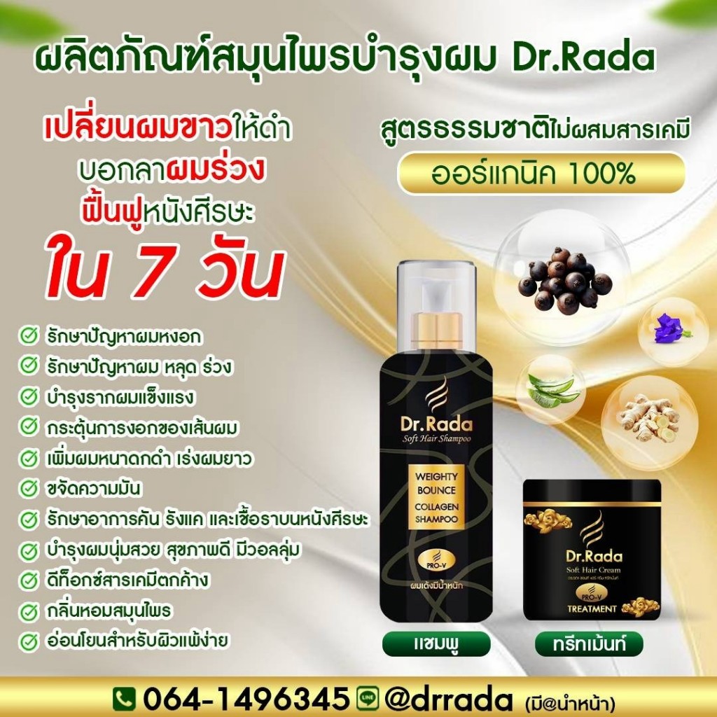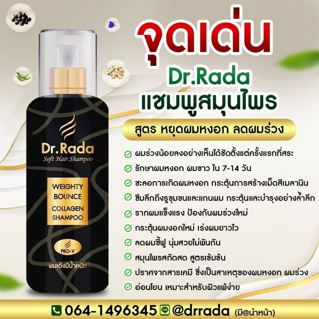[ของแท้+พร้อมส่ง]Dr.Rada ดร.รดา แชมพูสมุนไพร ผมขาว ผมหงอก บำรุงรากผม ผมล้านบาง ผมร่วงขาดง่าย รังแค