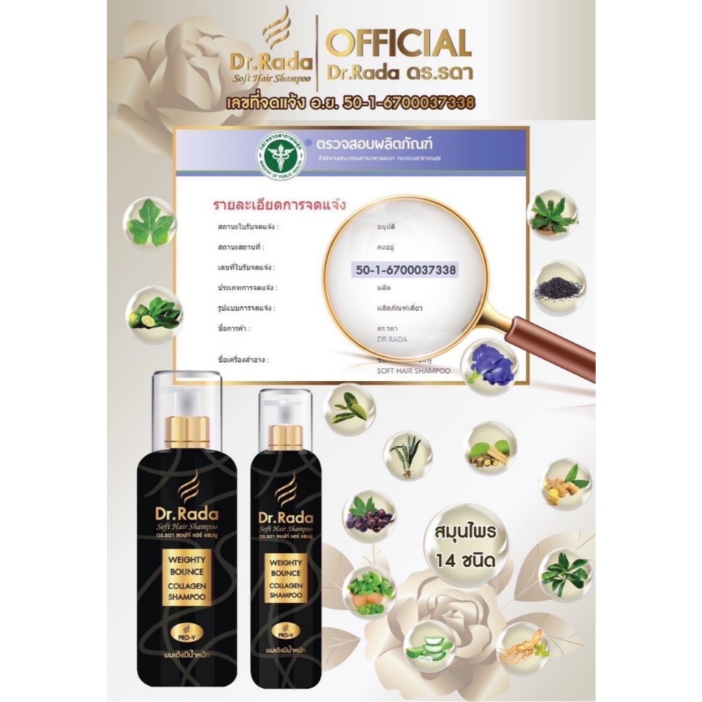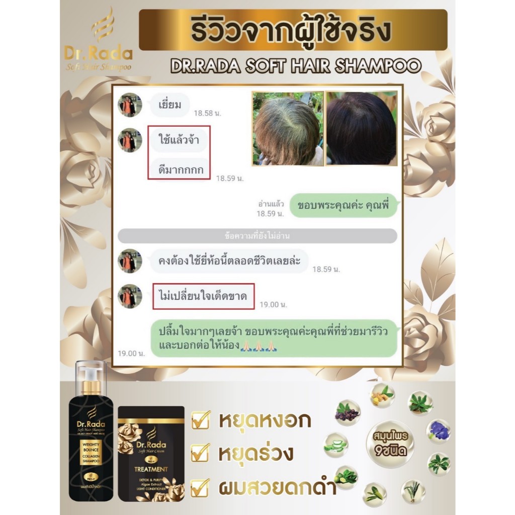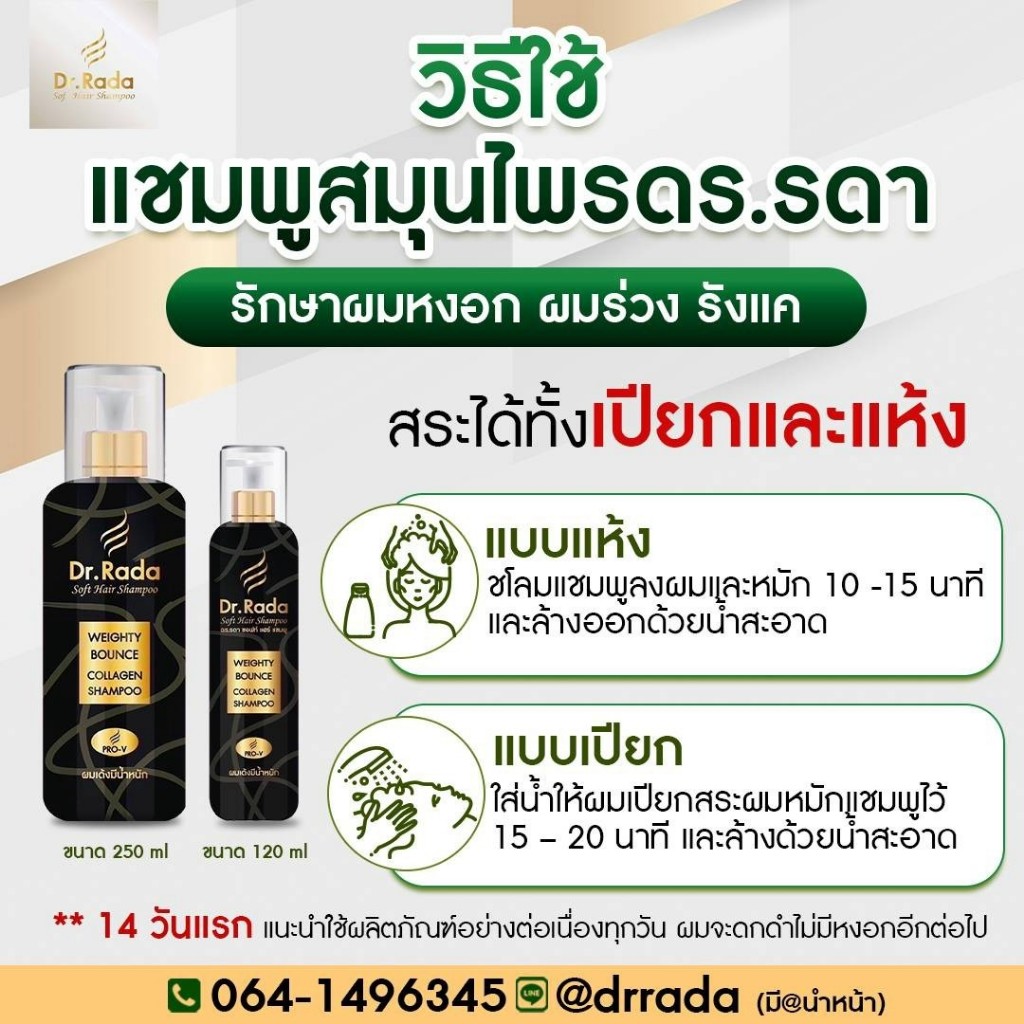 [ของแท้+พร้อมส่ง]Dr.Rada ดร.รดา แชมพูสมุนไพร ผมขาว ผมหงอก บำรุงรากผม ผมล้านบาง ผมร่วงขาดง่าย รังแค