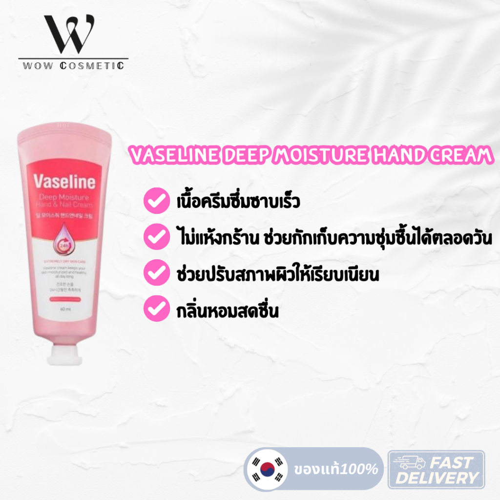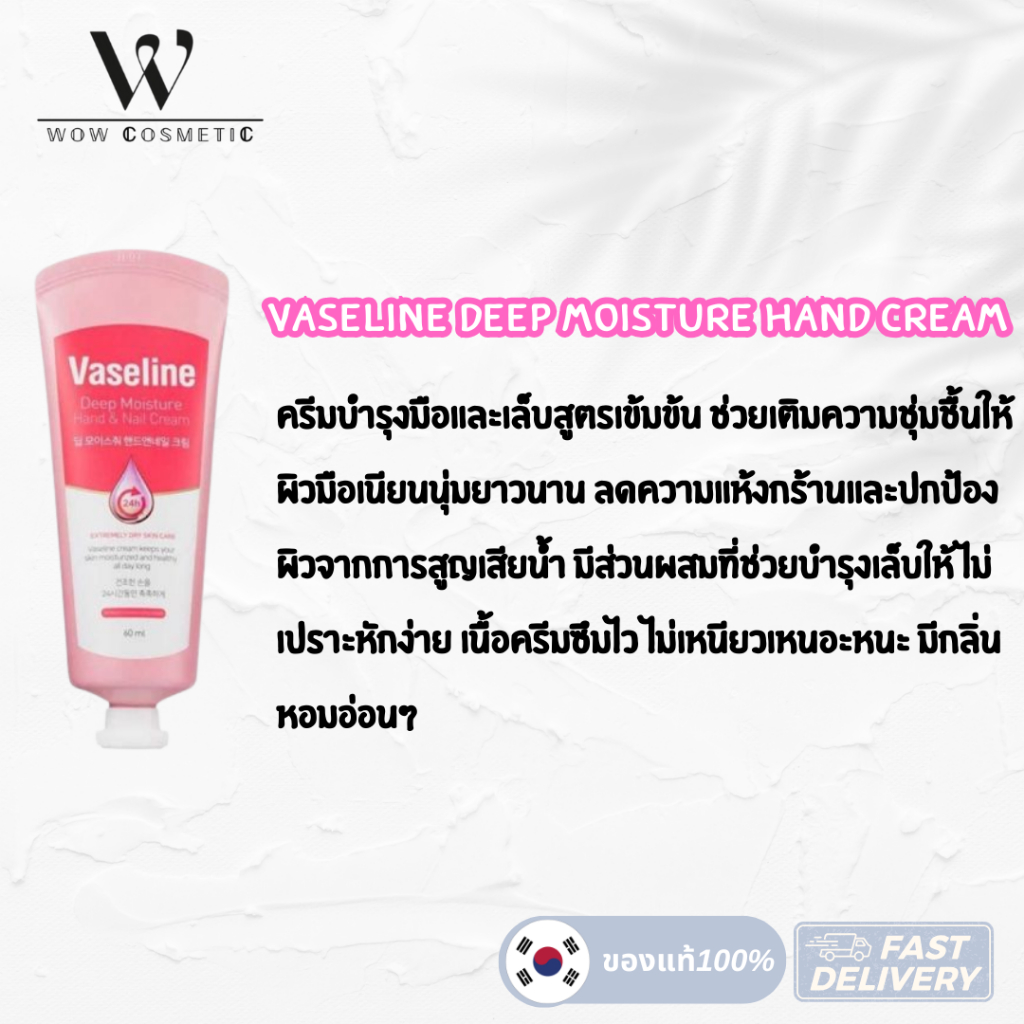 Vaseline deep moisture foot cream / Moisture Hand & Nail Cream 60 ml. วาสลีน ดีพ มอยเจอร์ไรเซอร์ ฟุต ครีม ครีมบำรุงเท้า
