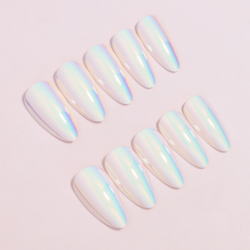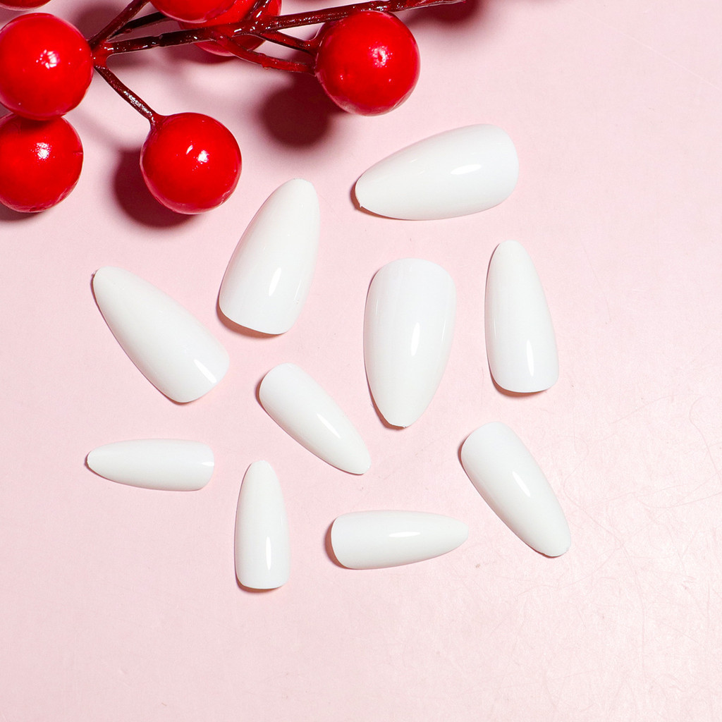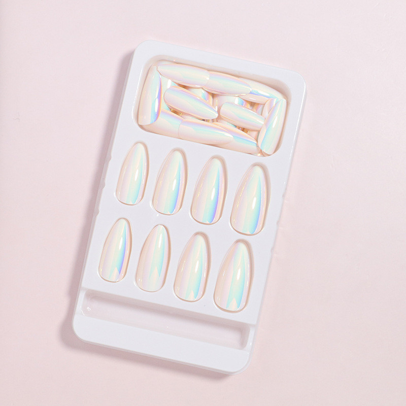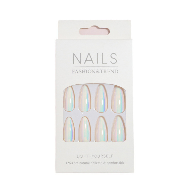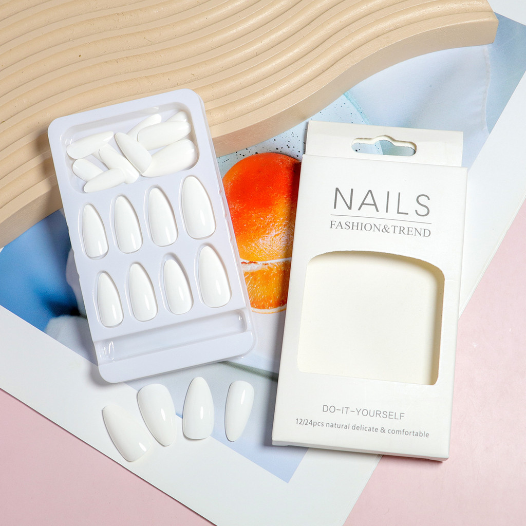 ✨# ชมพู ขาว เล็บสวย เล็บปลอม แฟชั่นสีเล็บ 24 ชิ้น【AA147】
